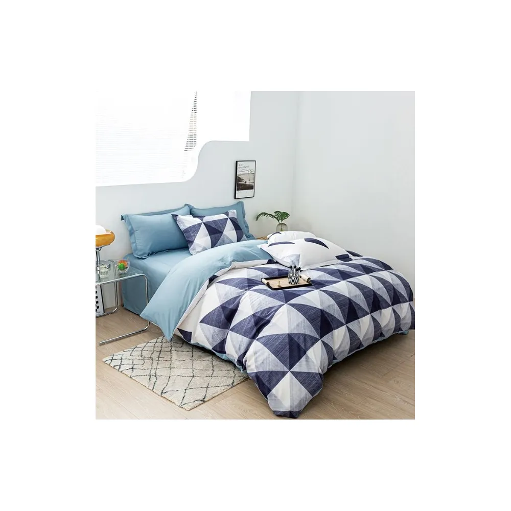 Lenjerie de Pat Dublu, Bumbac Finet-Creponat, 6 Piese, Bleu - CPL17