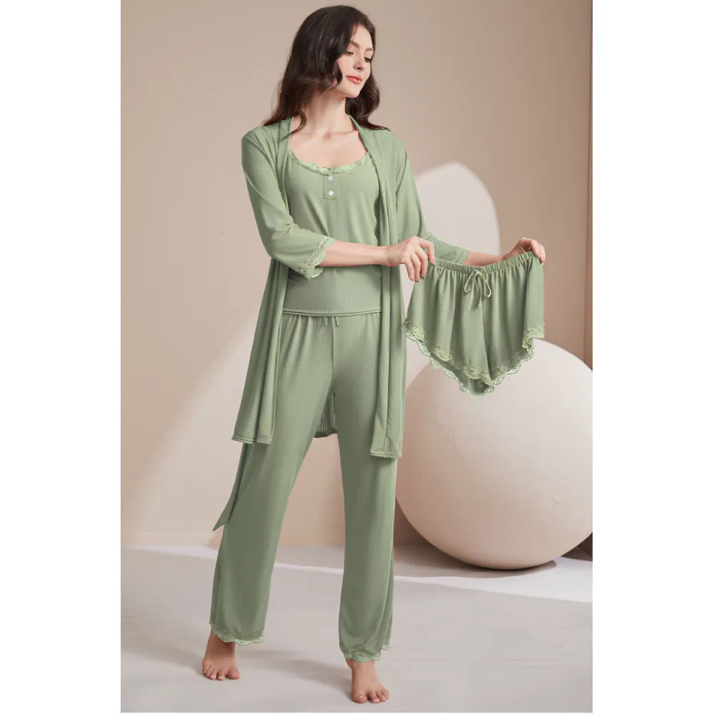 Set Pijama de Dama 4 Piese, Verde - ANI156