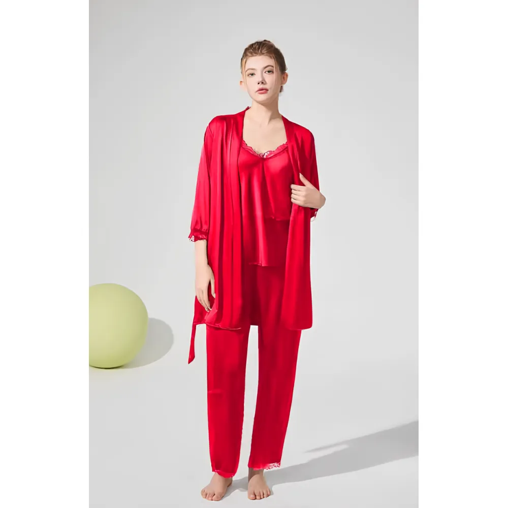 Set Pijama de Dama 3 Piese din Satin, Rosu - ANI160