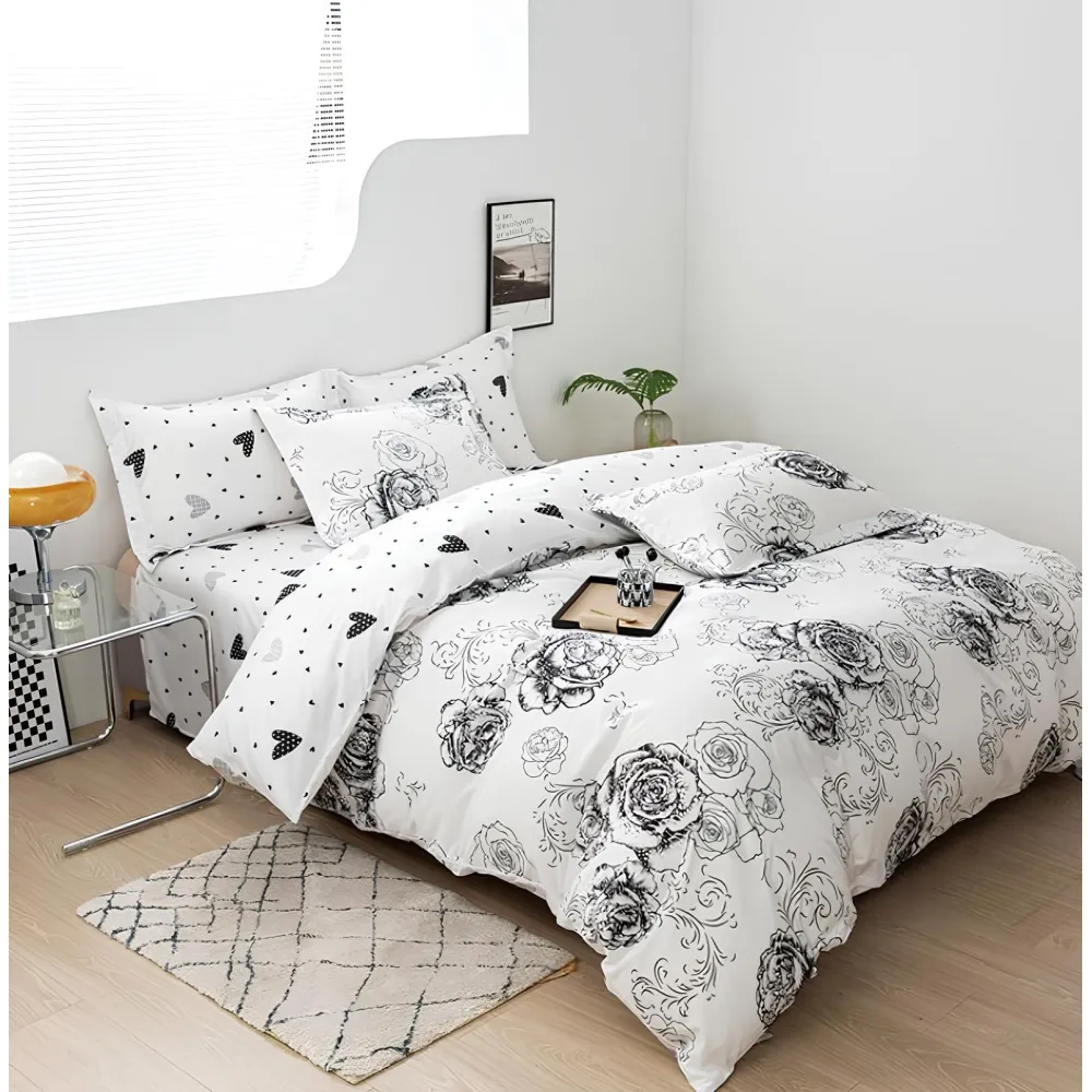 Lenjerie de Pat cu Elastic, Bumbac Finet, 6 Piese, Pat Dublu- FR394