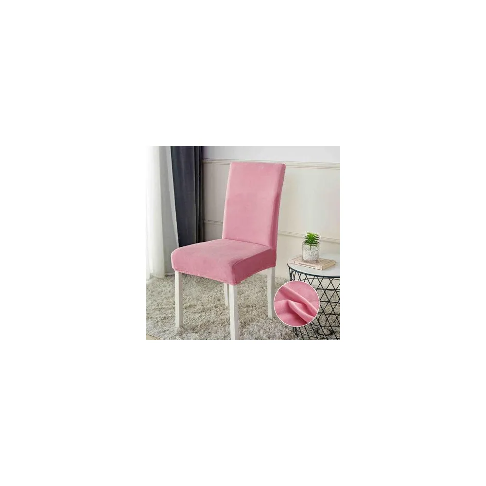 Set 6 Huse Elastice pentru Scaun, Catifea,Roz -JO236