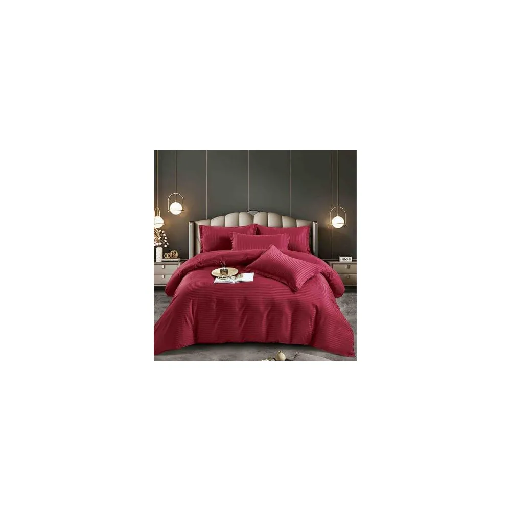 Lenjerie de Pat Dublu Cu Elastic - 100% Bumbac Damasc 6 Piese-JO176 Bordo