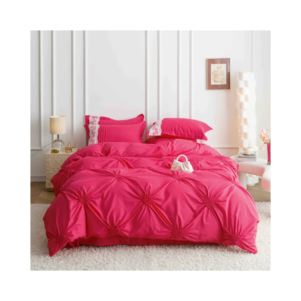 Lenjerie de Pat Finet, Pliuri Brodate, 6 pcs - JO127 Roz Inchis