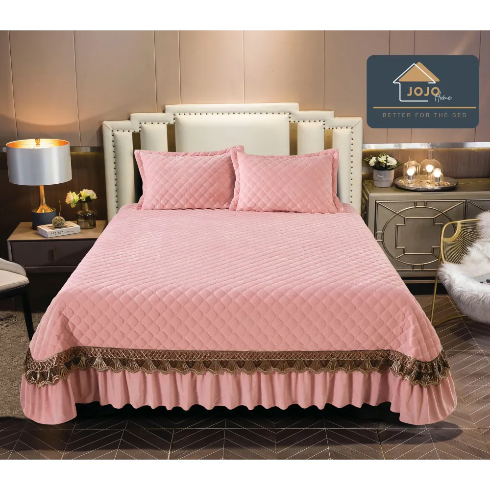 Set Cuvertura Pat Catifea -JO143 Culoare untului