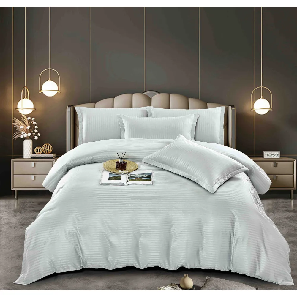 Lenjerie de Pat Dublu Cu Elastic - 100% Bumbac Damasc 6 Piese-JO174 Gri deschis