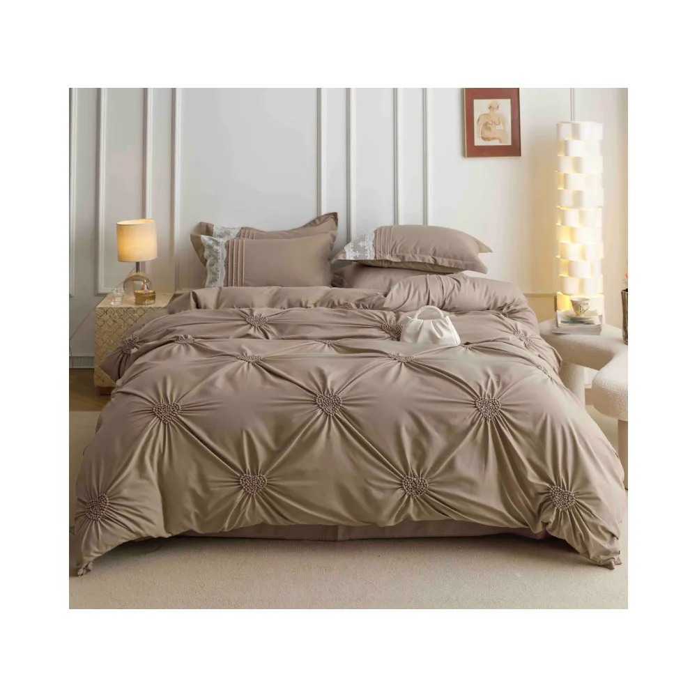 Lenjerie de Pat Finet, Pliuri Brodate, 6 pcs - JO129 Bej
