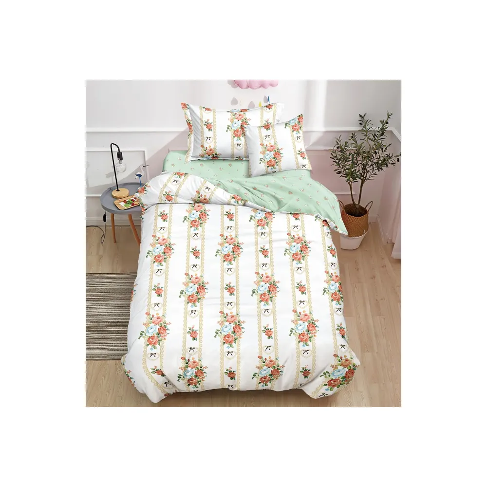 Lenjerie de Pat Bumbac Finet, 1 Persoana , 4 Piese- JO377