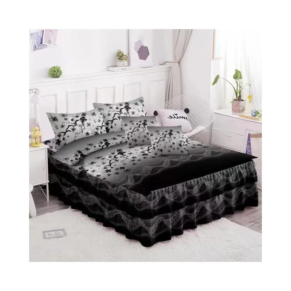 Lenjerie De Lux Cu Volanase Pentru Pat Dublu Din Bumbac FINET Satinat Gros -LJO722