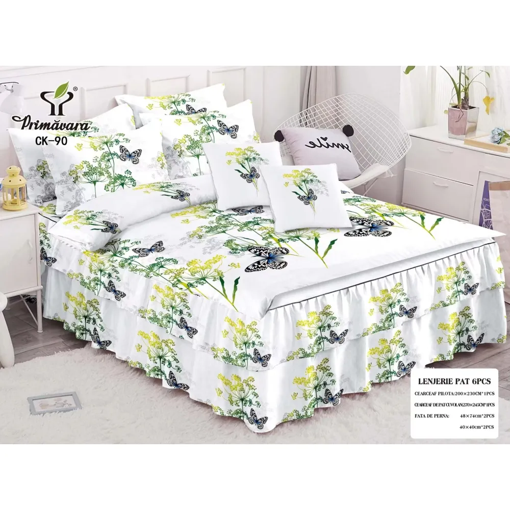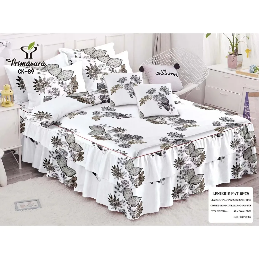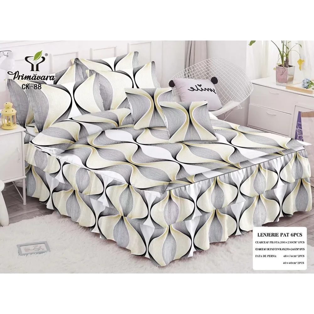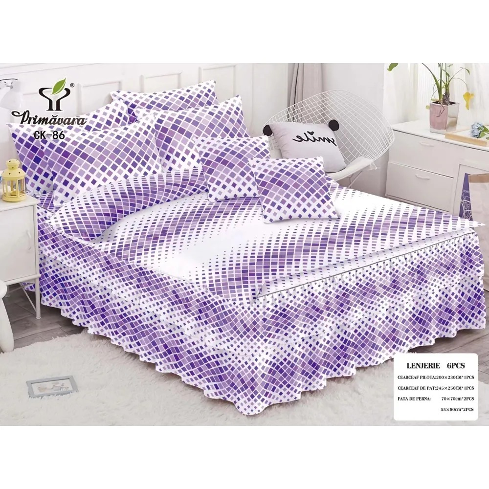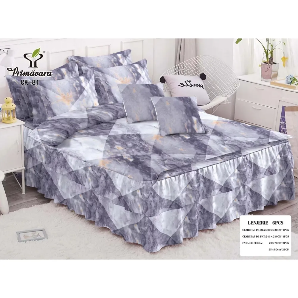 Lenjerie de Pat, Bumbac Finet, 6 Piese, Pat Dublu -JO67