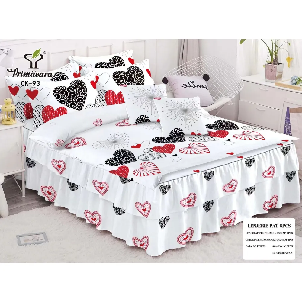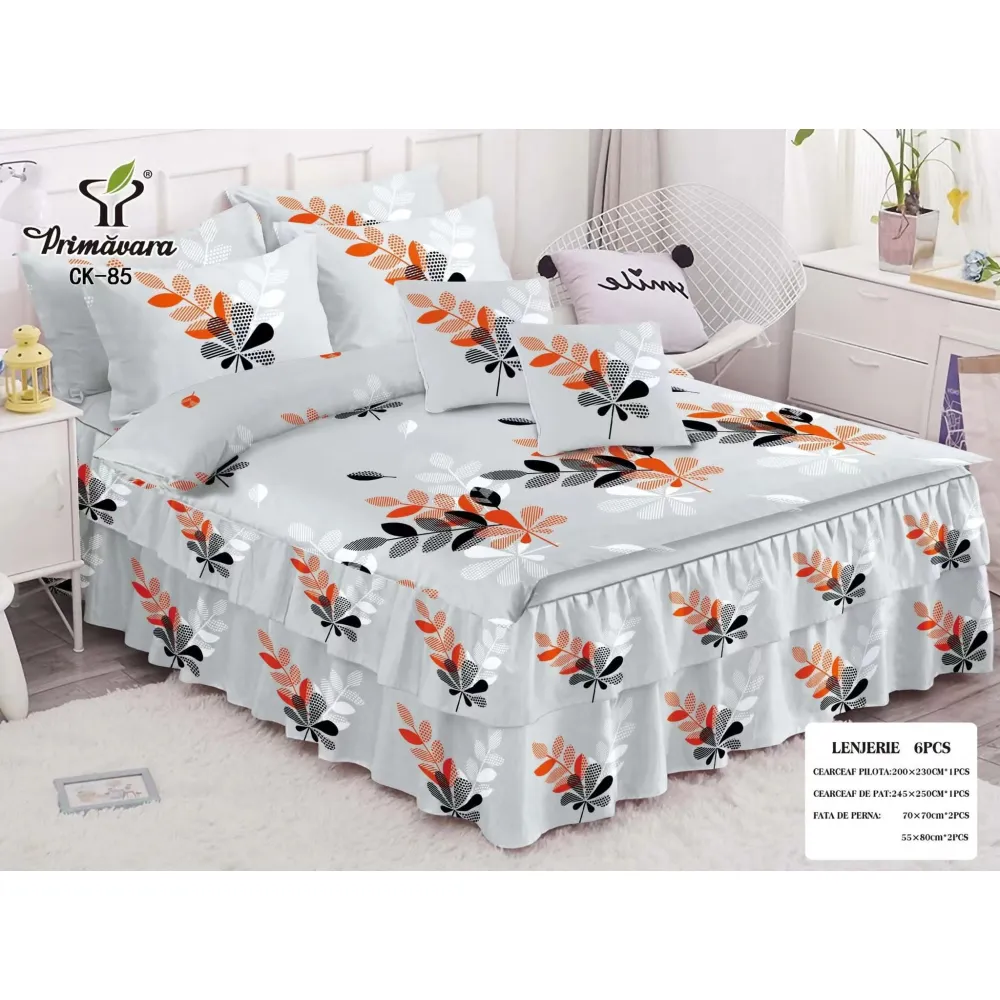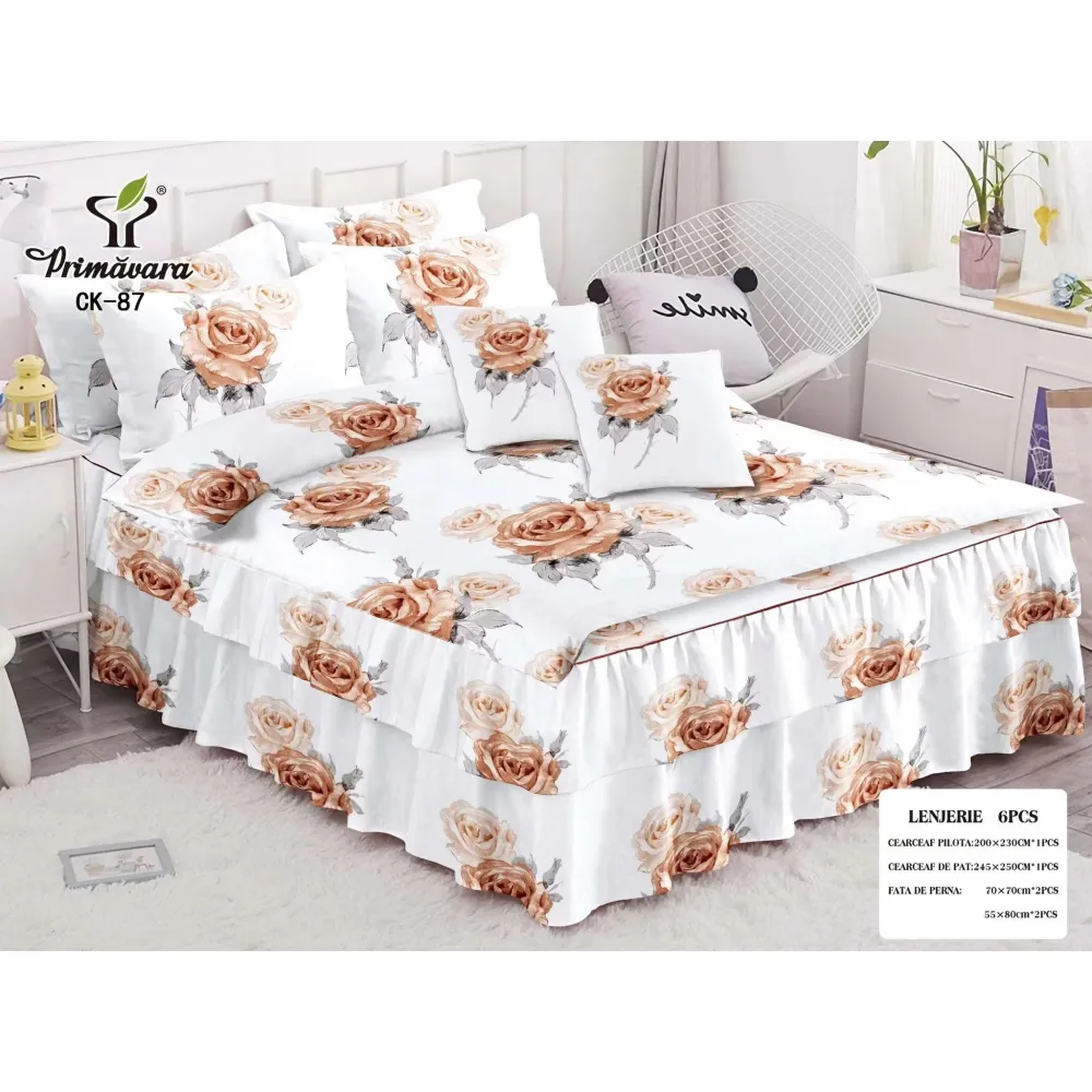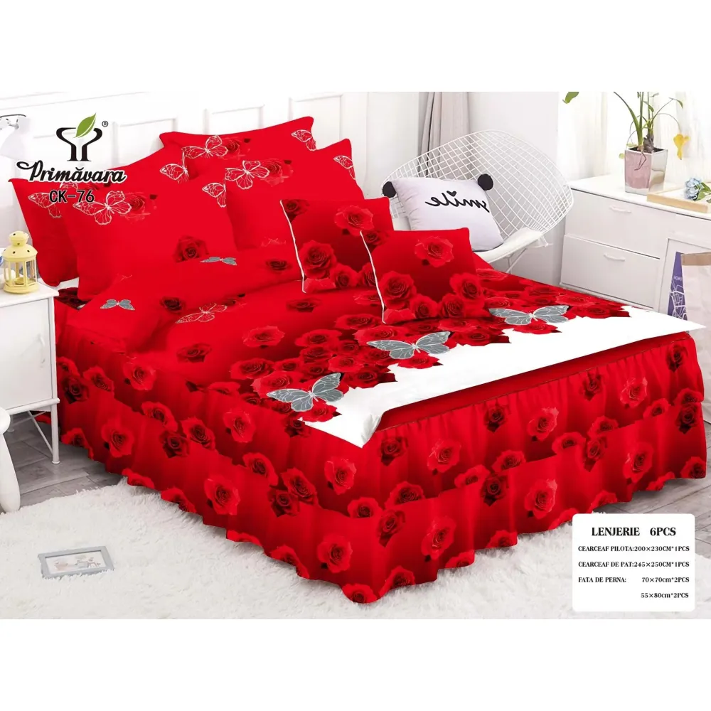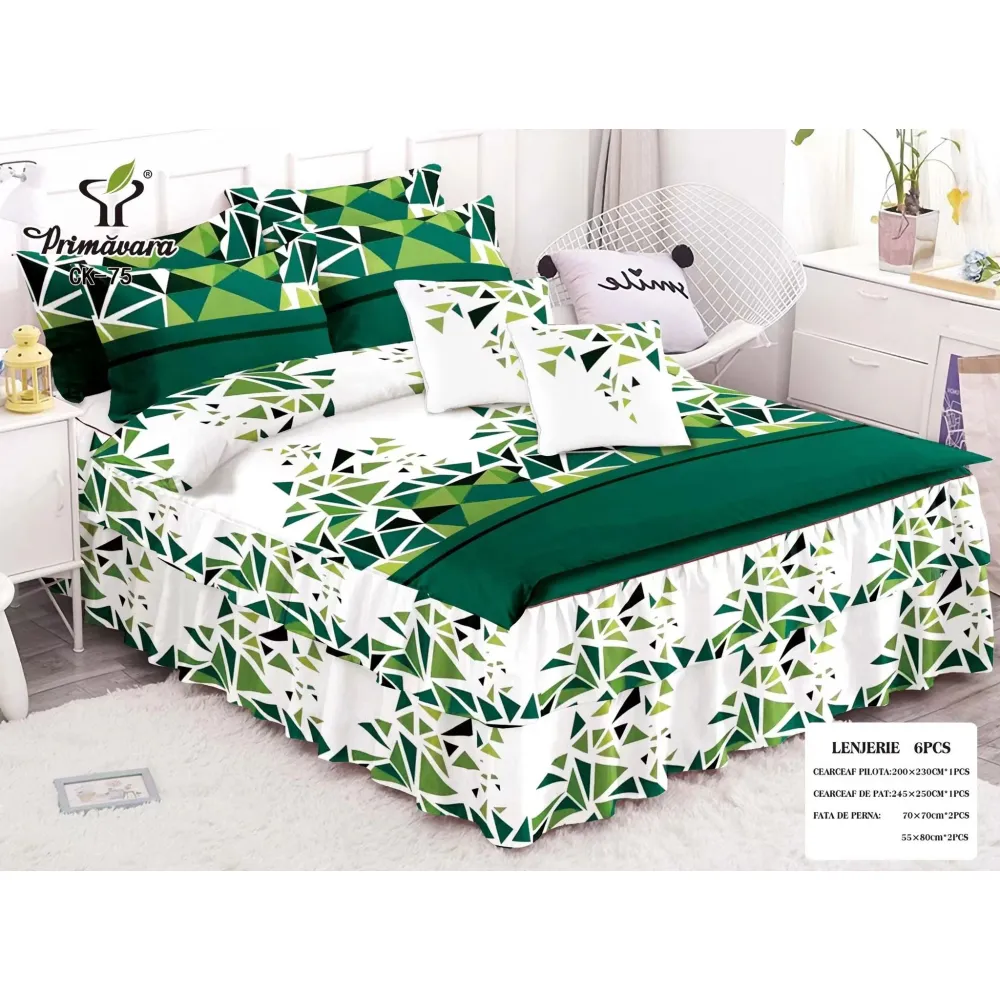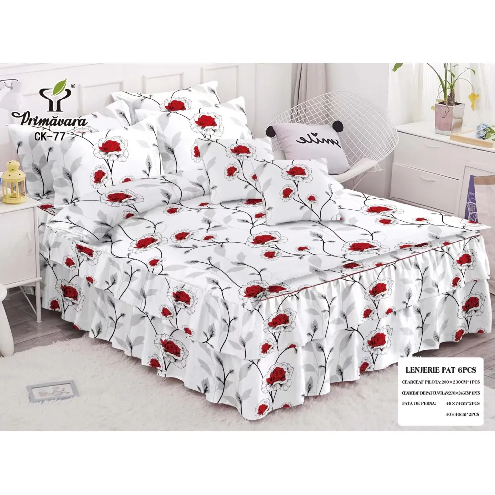 Lenjerie de Pat, Bumbac Finet, 6 Piese, Pat Dublu -JO67