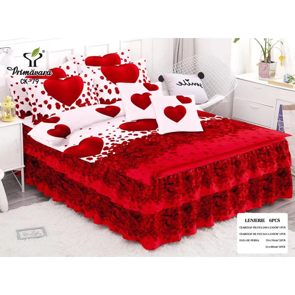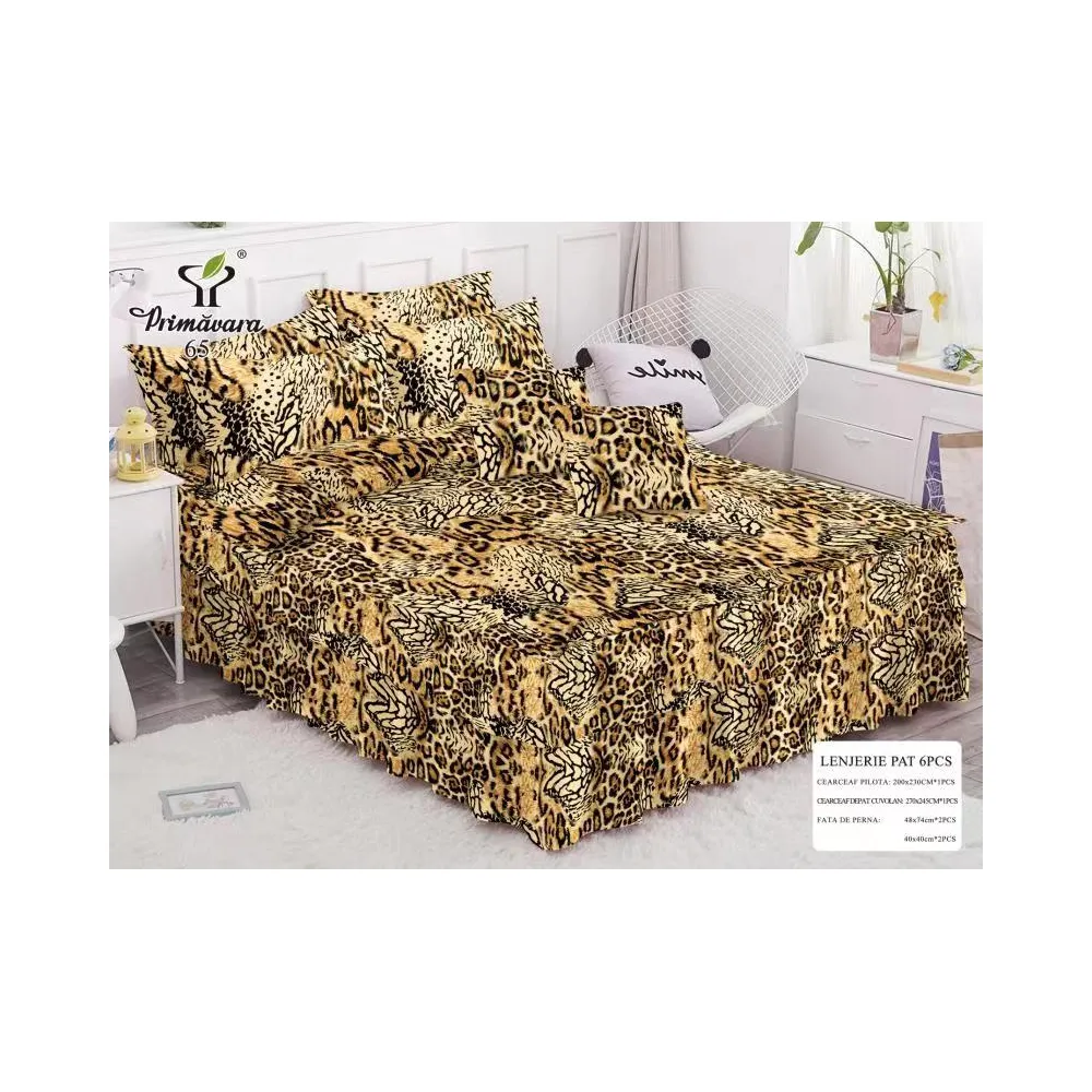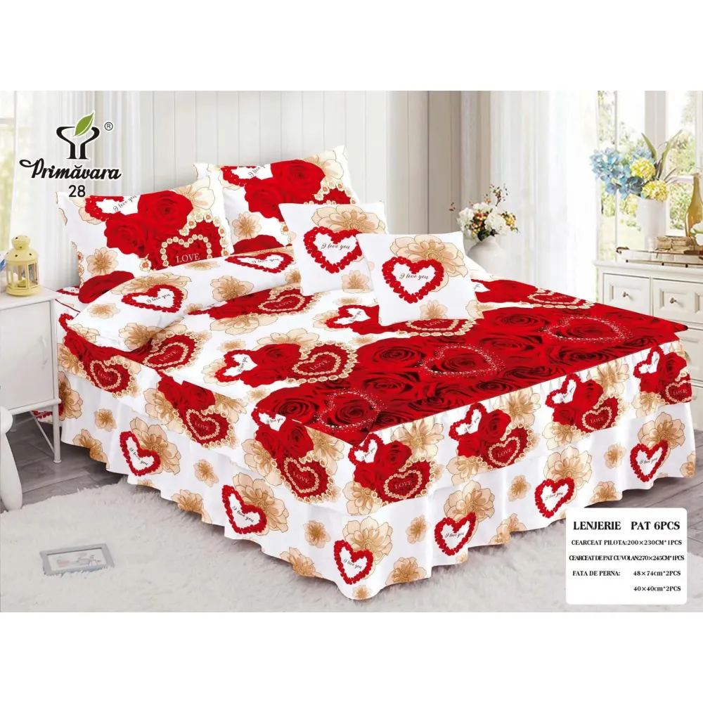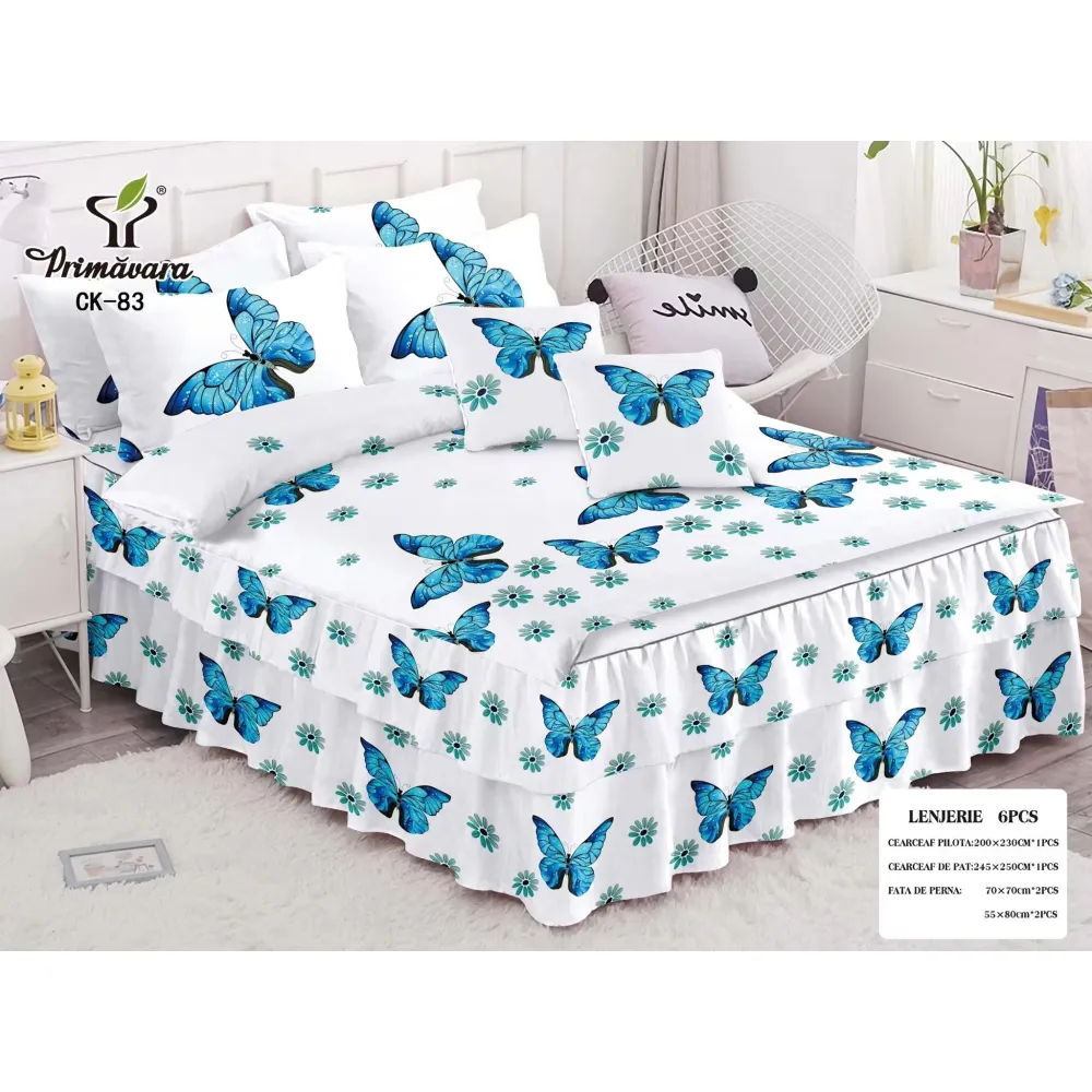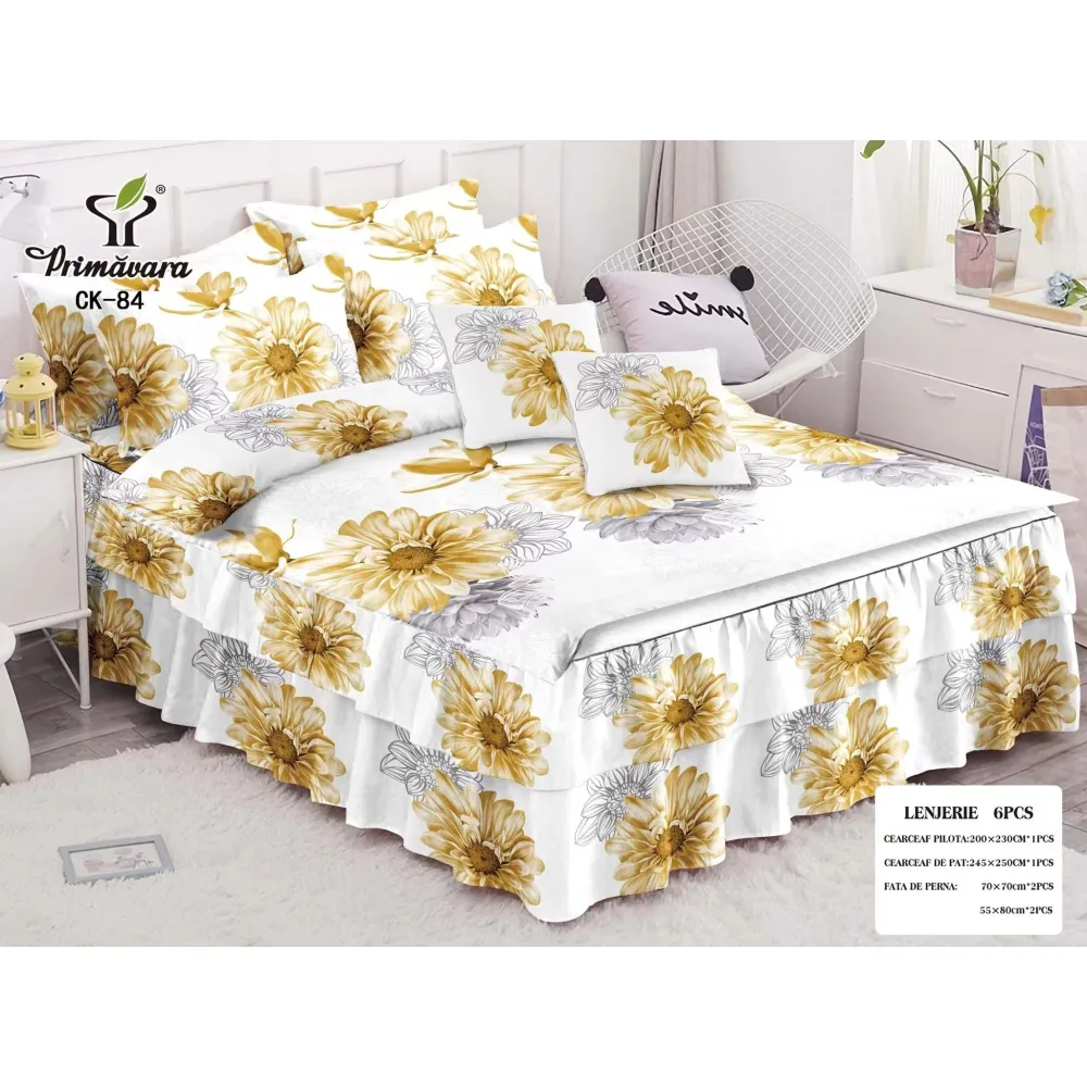 Lenjerie de Pat, Bumbac Finet, 6 Piese, Pat Dublu -JO67