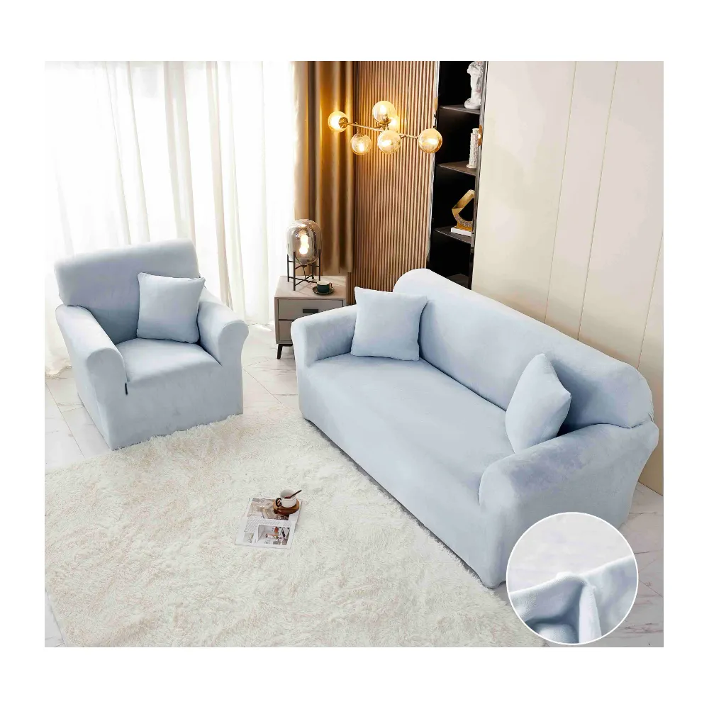 Set Huse Canapea 3 Locuri, Canapea 2 Locuri si 1 Fotoliu Catifea Albastru deschis - JOJ459