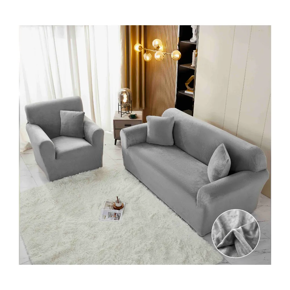 Set Huse Canapea 3 Locuri, Canapea 2 Locuri si 1 Fotoliu Catifea Gri deschis - JOJ460