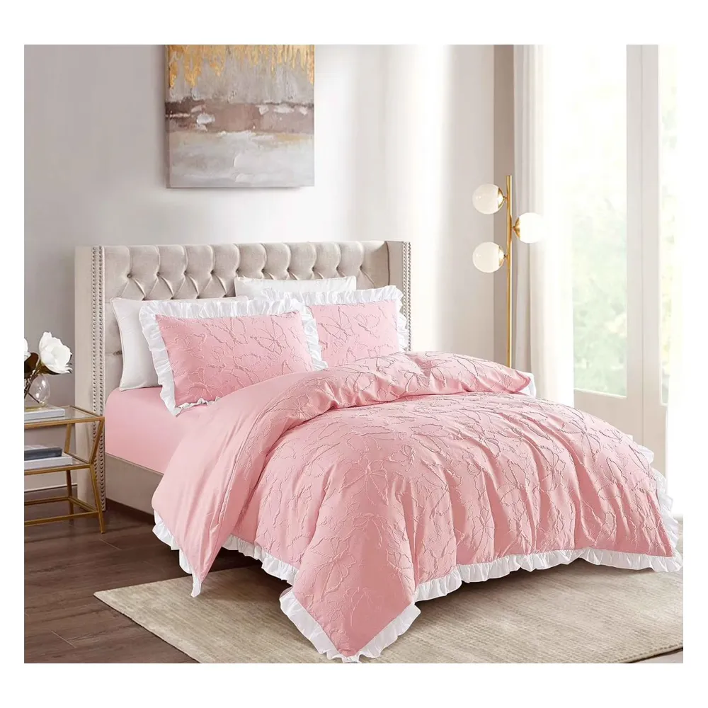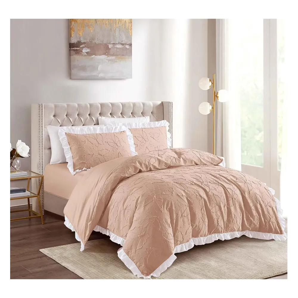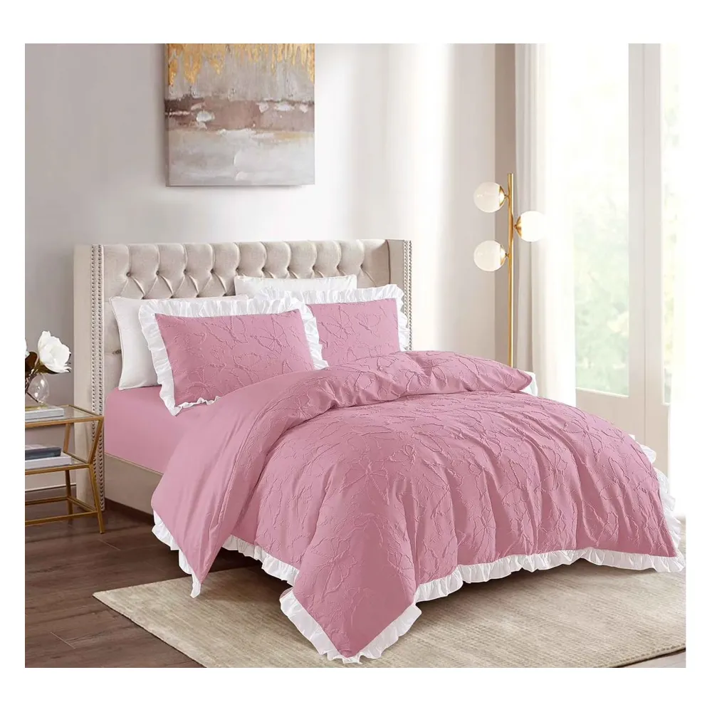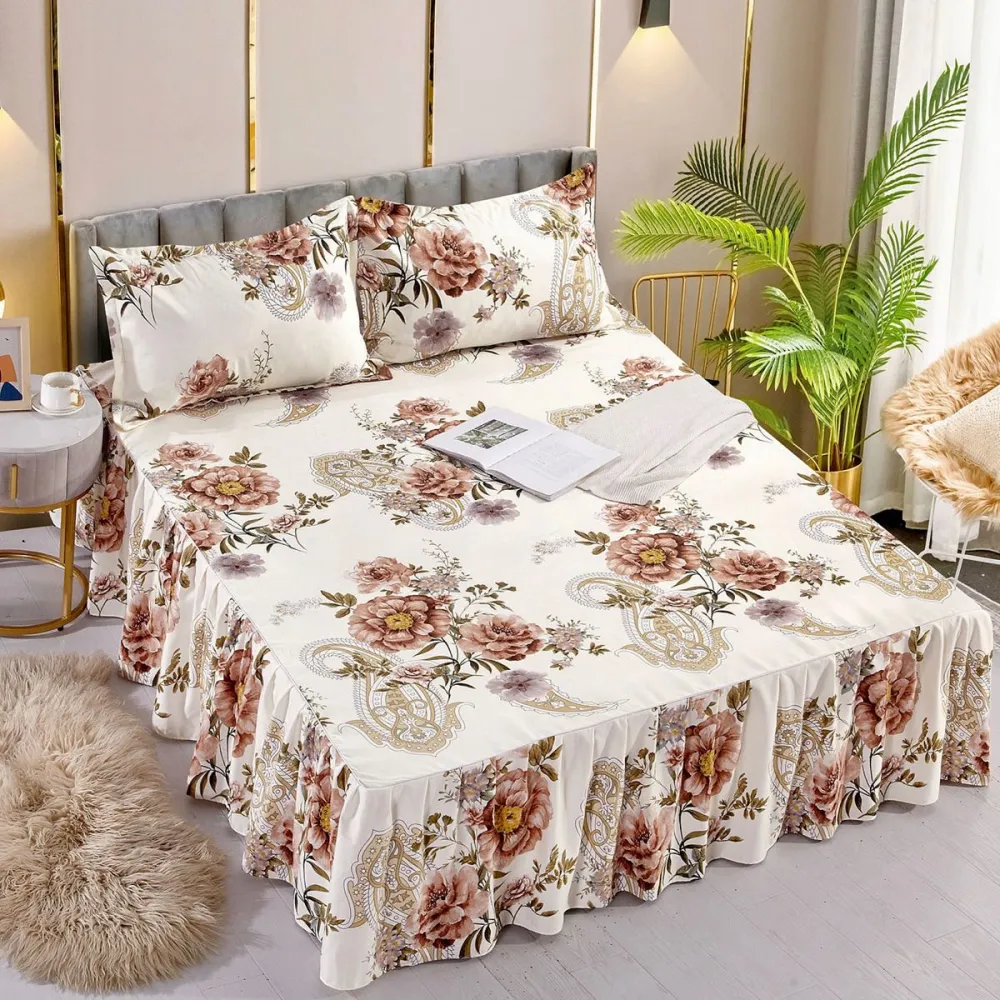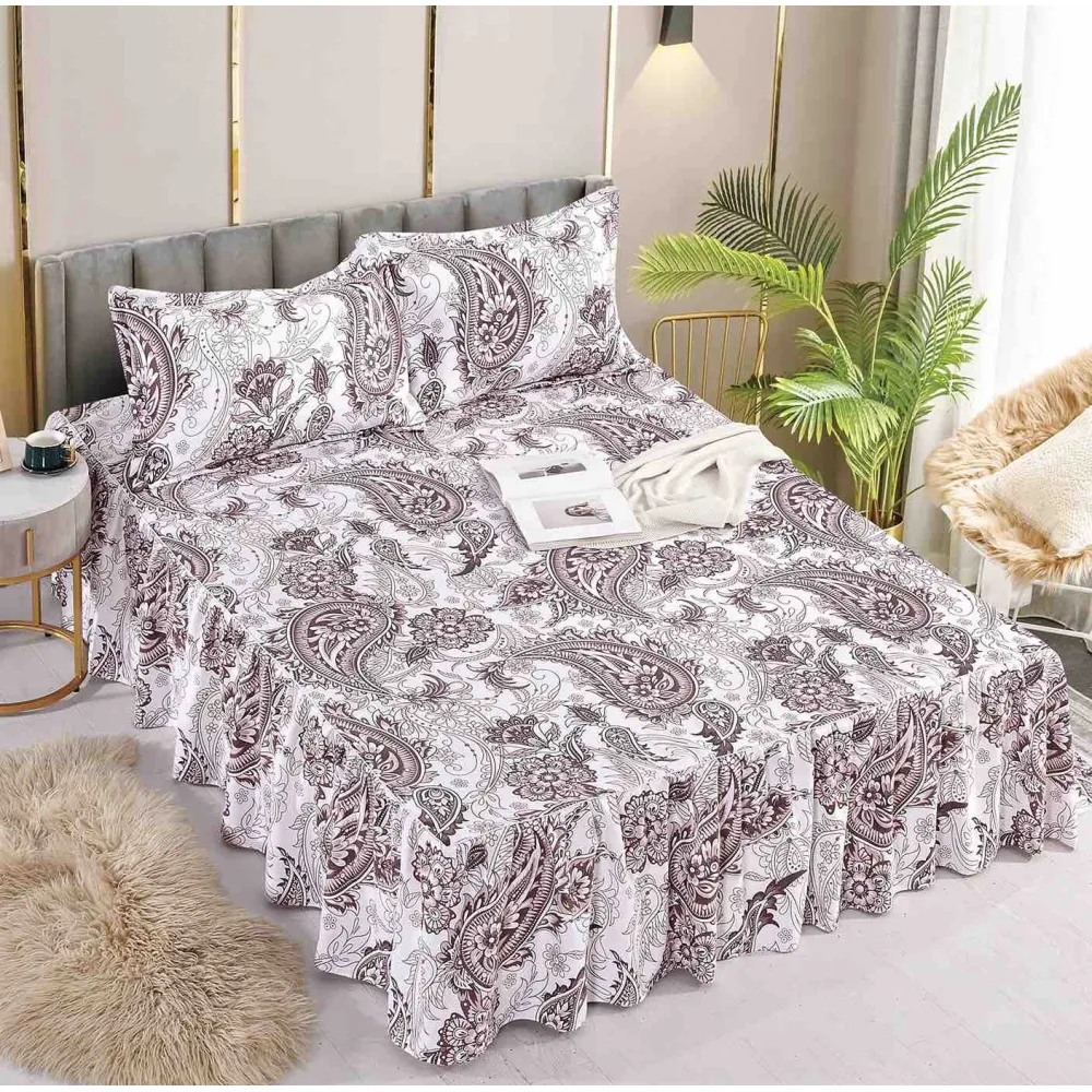 Cearceaf De Pat Cu Volane si 2 Fete De Perna Bumbac Finet - JOJ87