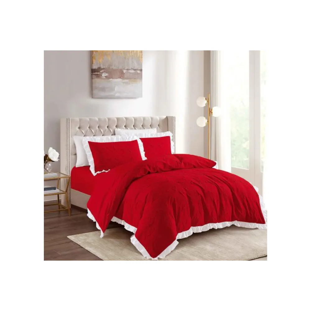 Lenjerie de Pat Dublu, Bumbac Finet-Creponat, 6 Piese, Rosu-LJ1098