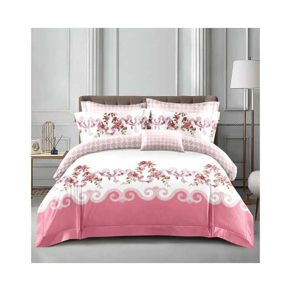 Lenjerie de Pat Dublu, Bumbac Finet-Creponat, 6 Piese, Roz-LJ1096