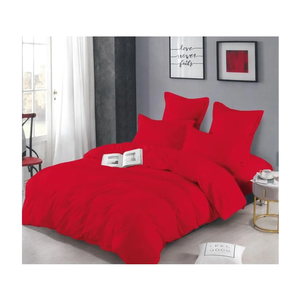 Lenjerie de Pat Dublu, Bumbac Finet, 4 Piese Cu Elastic, Rosu- CPL128