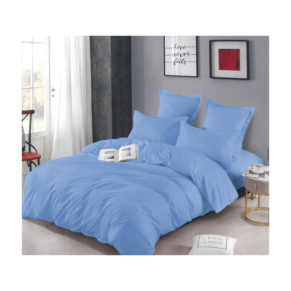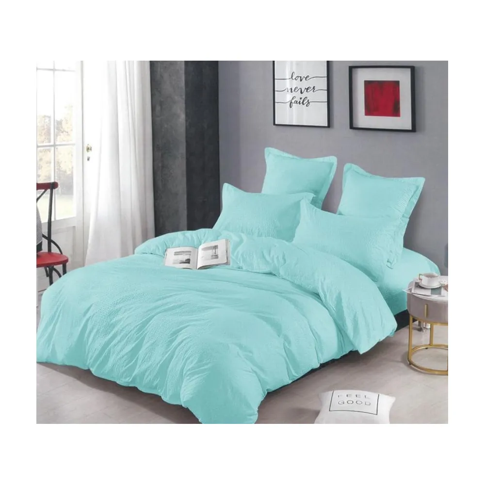 Lenjerie de Pat Dublu, Bumbac Finet-Creponat, 6 Piese, Azuriu-LJ1099