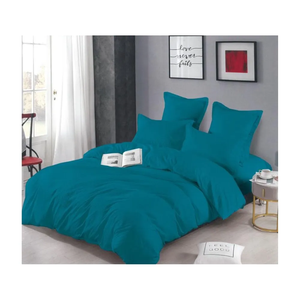 Lenjerie de Pat Dublu, Bumbac Finet-Creponat, 6 Piese, Albastru petrol-LJ1100