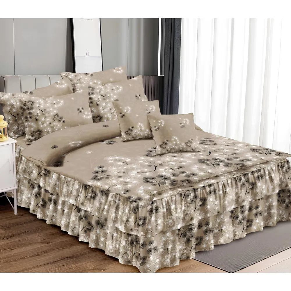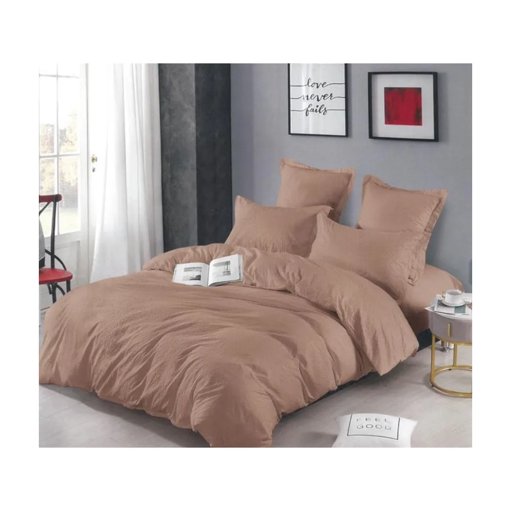 Lenjerie de Pat Dublu, Bumbac Finet-Creponat, 6 Piese, Maro deschis-LJ1105