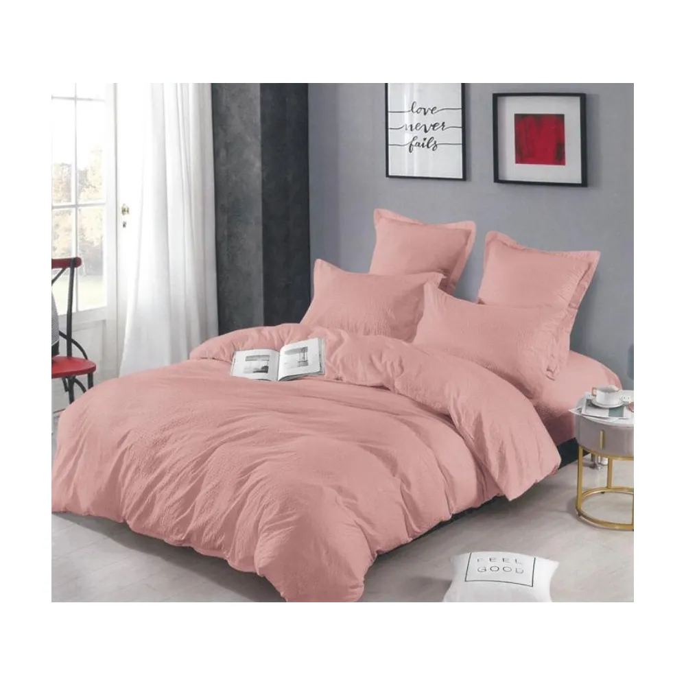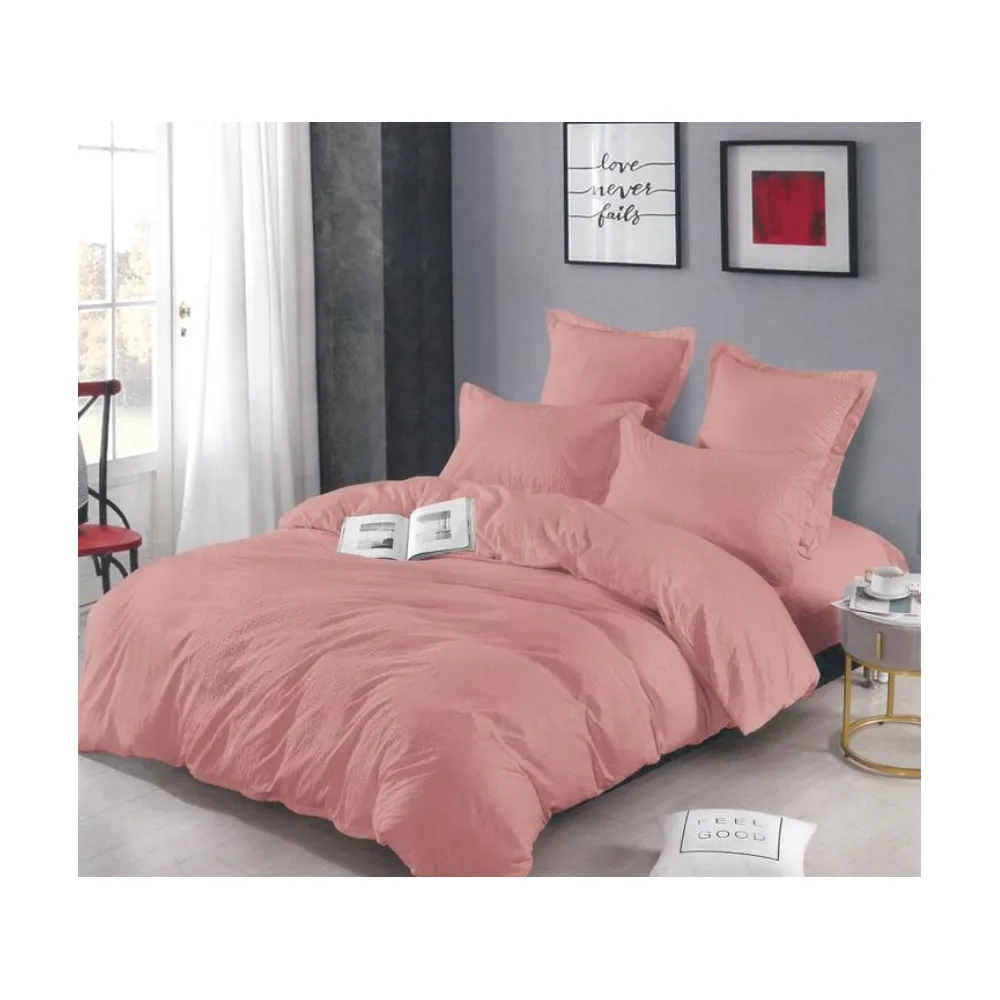 Lenjerie de Pat Dublu, Bumbac Finet-Creponat, 6 Piese, Roz pudra- LJ1094