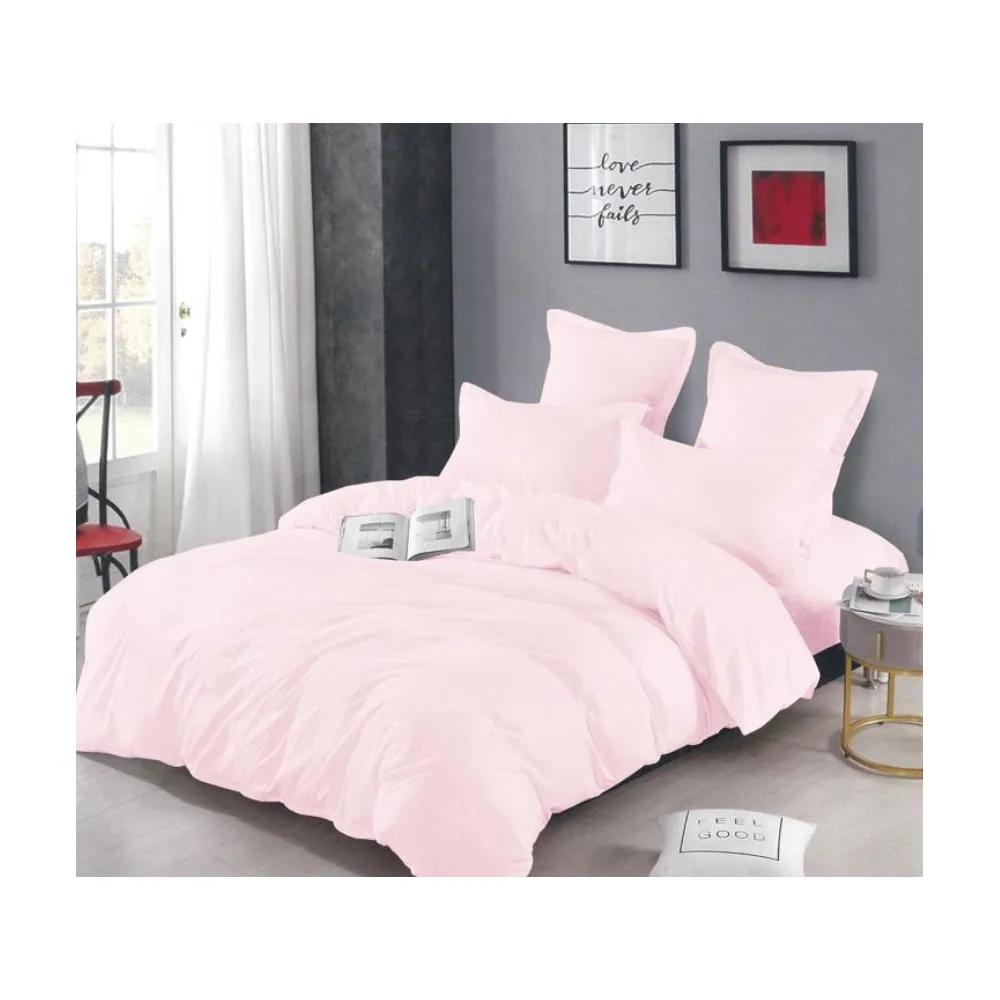 Lenjerie de Pat Dublu, Bumbac Finet, 4 Piese Cu Elastic, Roz Deschis-CPL134