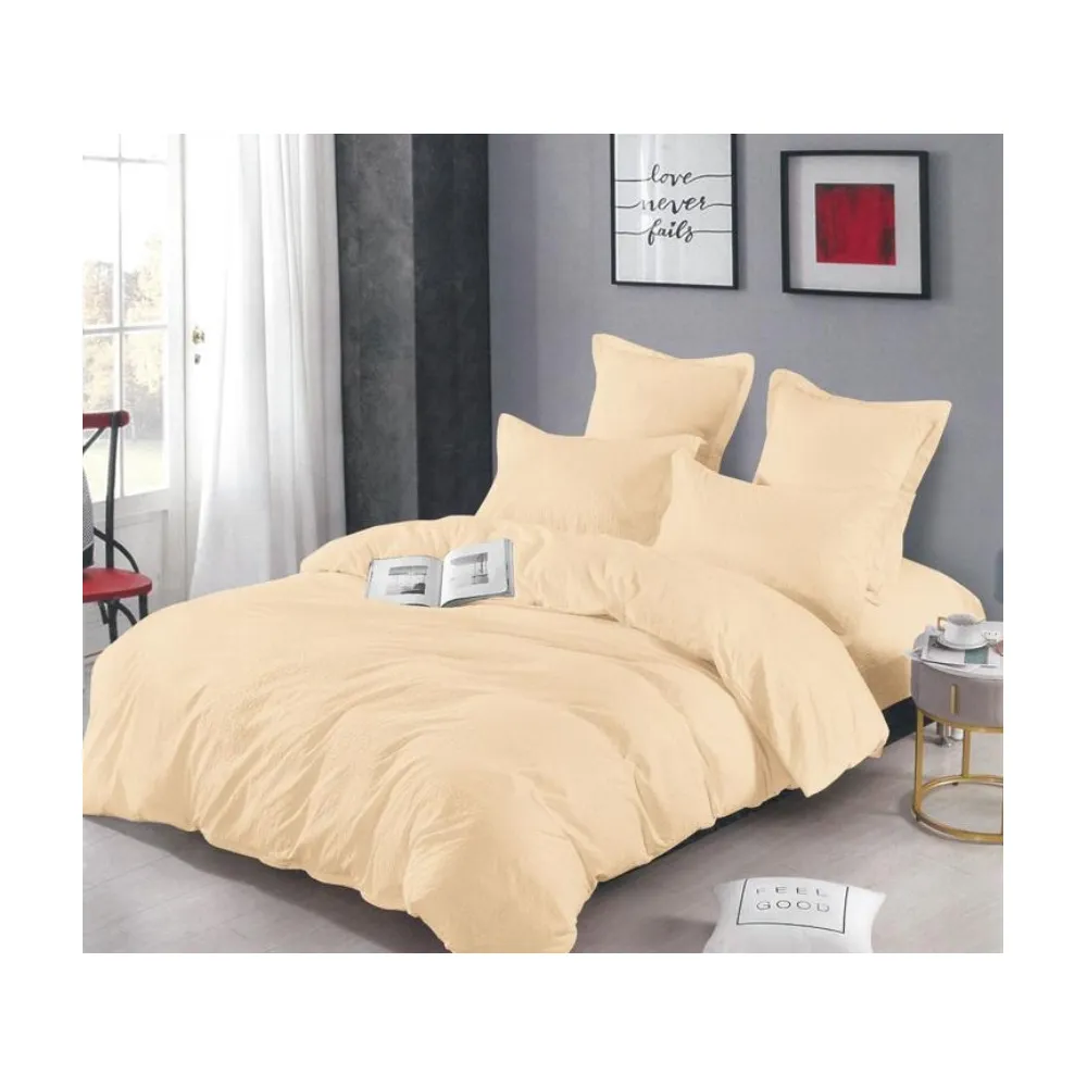 Lenjerie de Pat Dublu, Bumbac Finet-Creponat, 6 Piese,Culoarea Untului-LJ1111