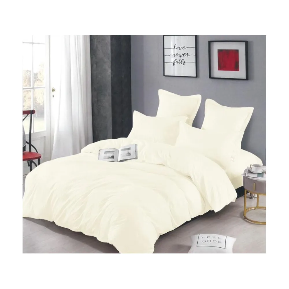 Lenjerie de Pat Dublu, Bumbac Finet, 4 Piese Cu Elastic, Bej Deschis - CPL135