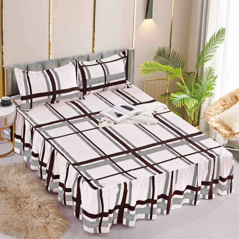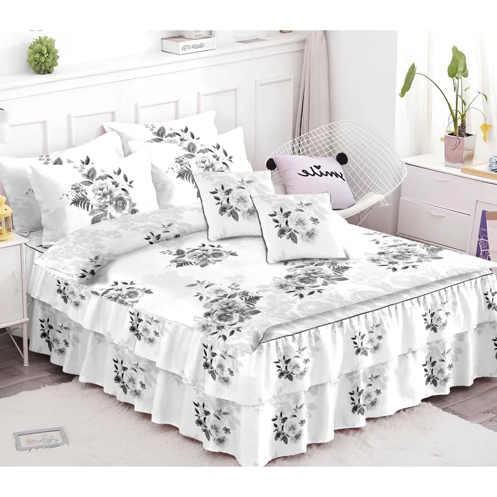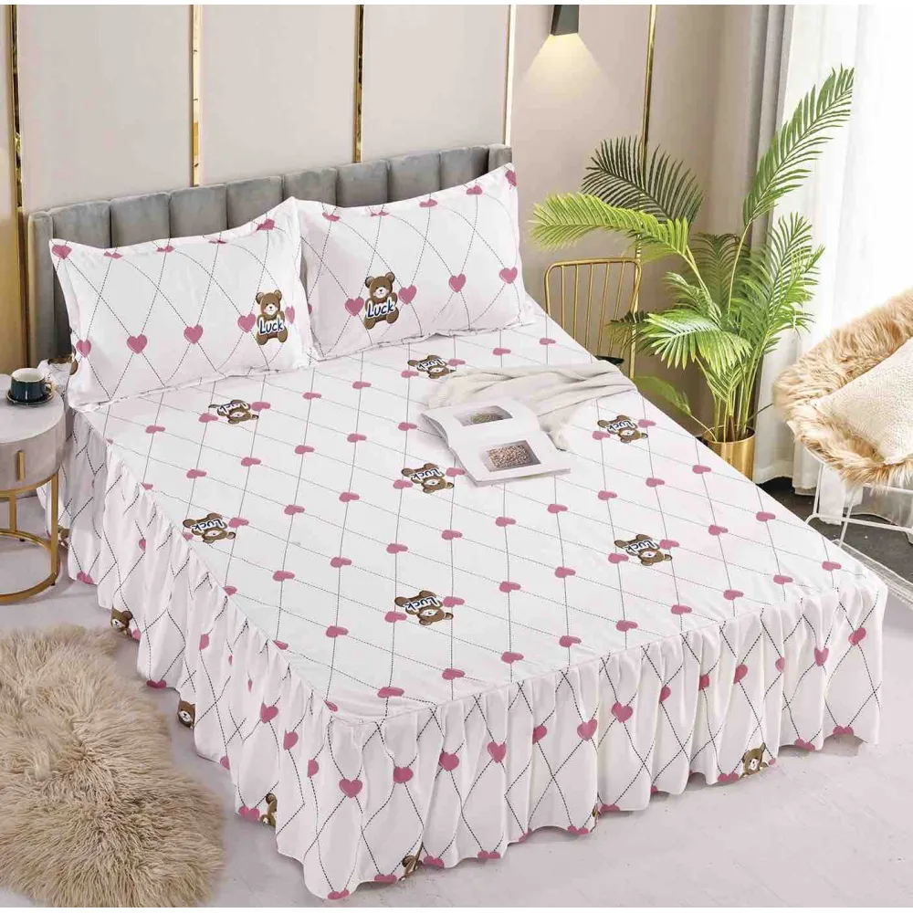 Cearceaf De Pat Cu Volane si 2 Fete De Perna Bumbac Finet - JOJ78