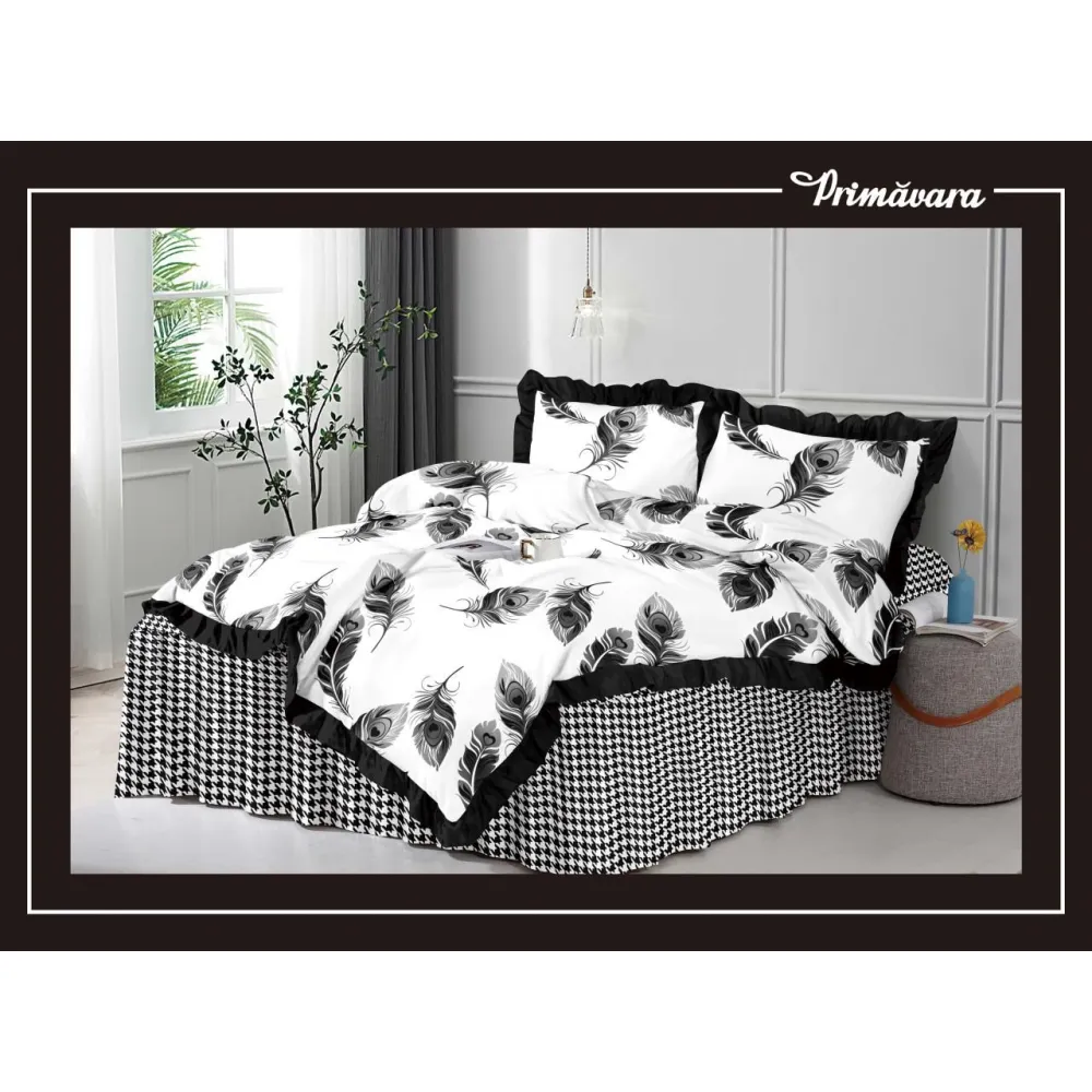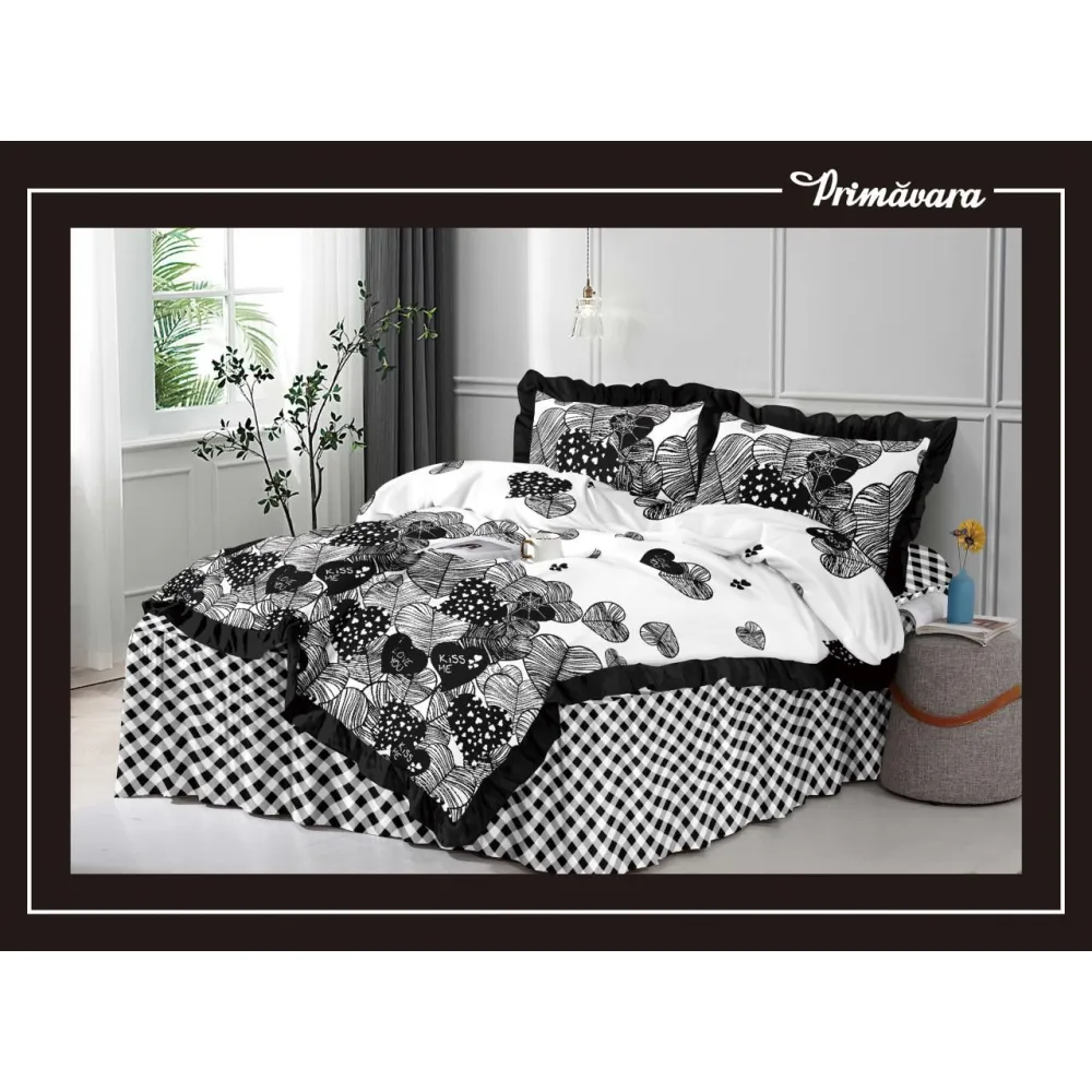 Lenjerie de Lux cu Volanase pentru pat dublu din Bumbac FINET Gros - CPL95