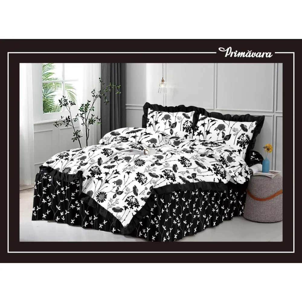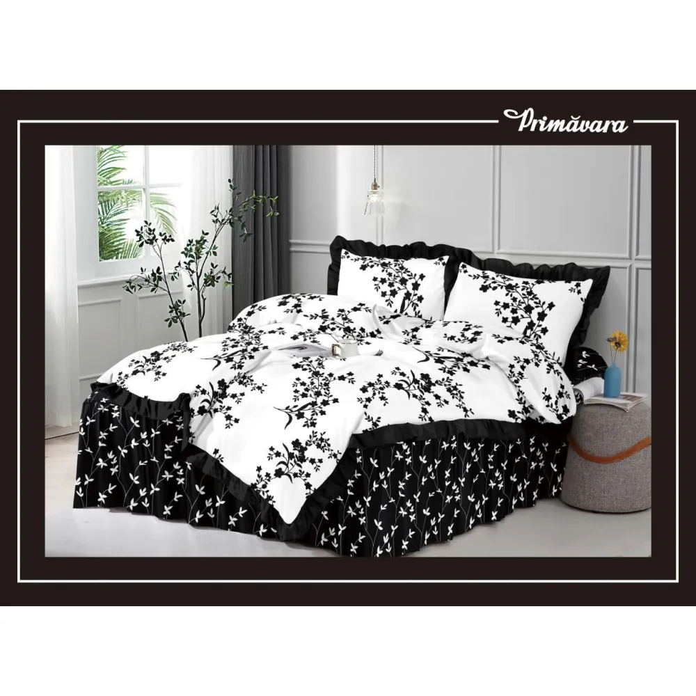 Lenjerie de Lux cu Volanase pentru pat dublu din Bumbac FINET Gros - CPL284
