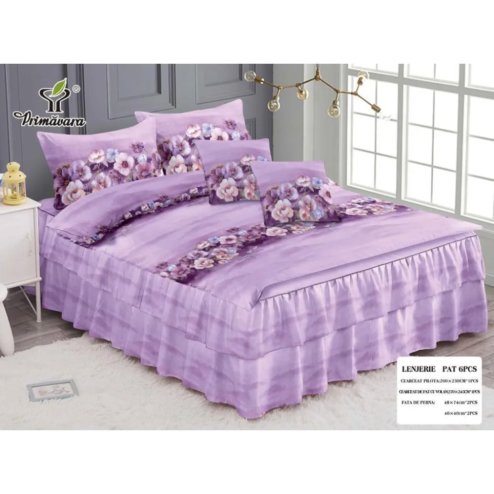 Lenjerie de pat Bumbac Finet 6 piese cu elastic - SIPRT79