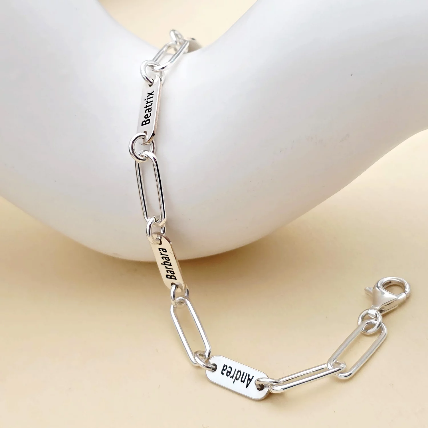 Bratara TOTUL MEU - 4 placute personalizate si lant din zale mari - Argint 925
