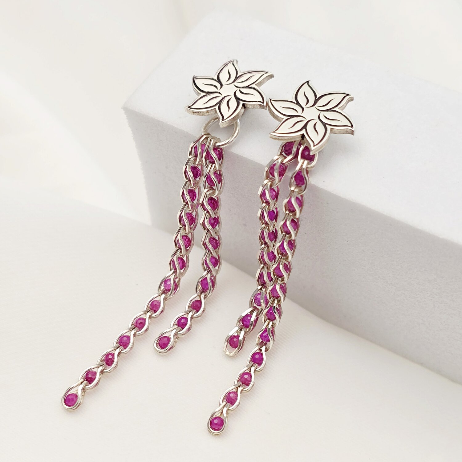 Cercei cromatici - Model lantisor lung impletit cu Zirconii - Argint 925