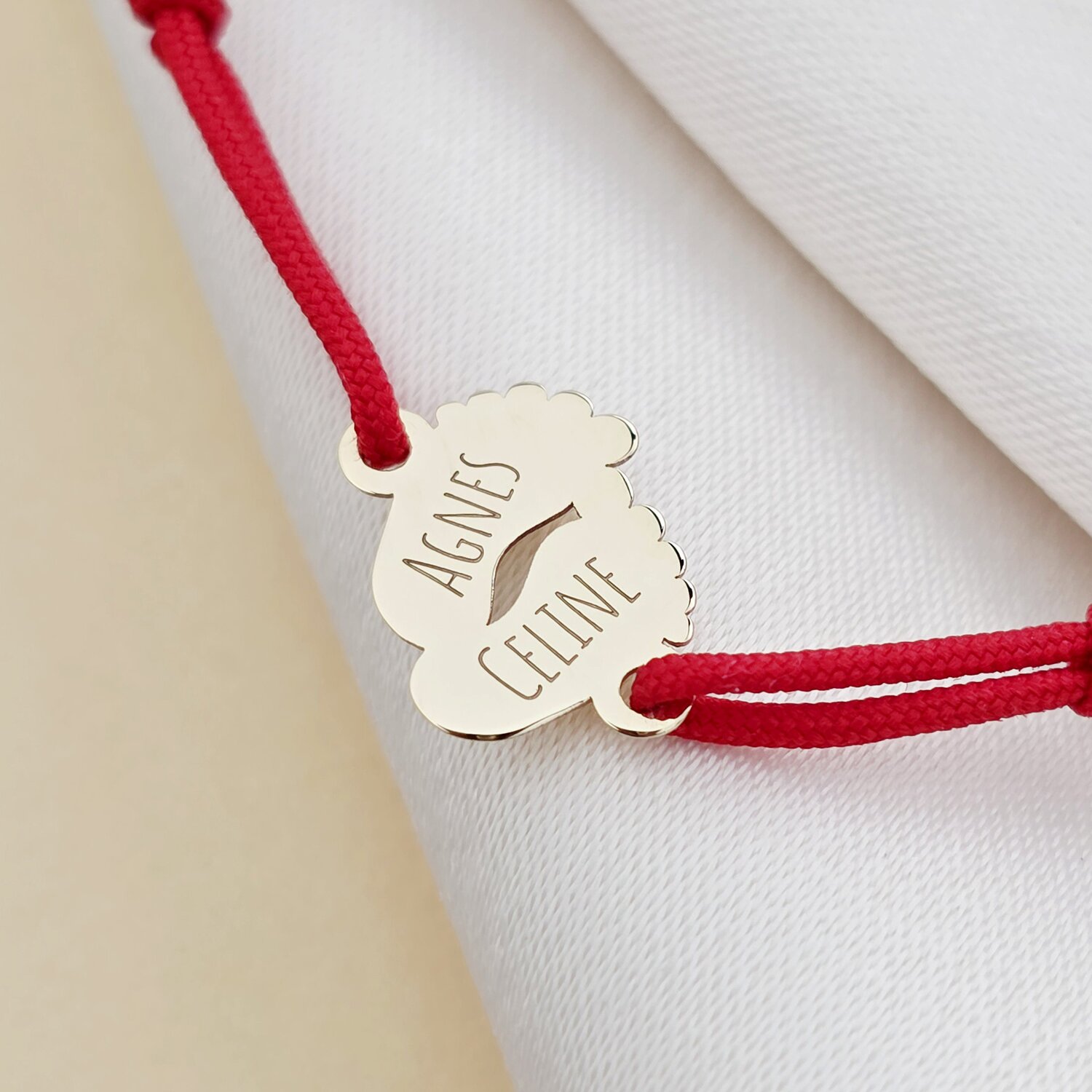 Bratara personalizata cu nume - Forma Soricel - Aur Galben 9K - snur reglabil