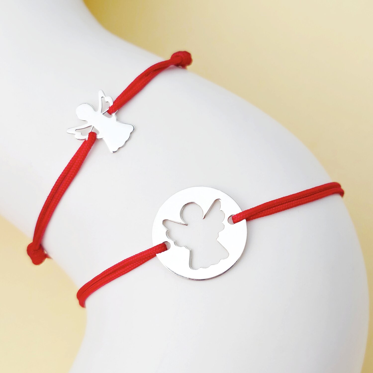 Set 2 bratari - banut cu ingeras decupat - Argint 925 - Snur reglabil diverse culori