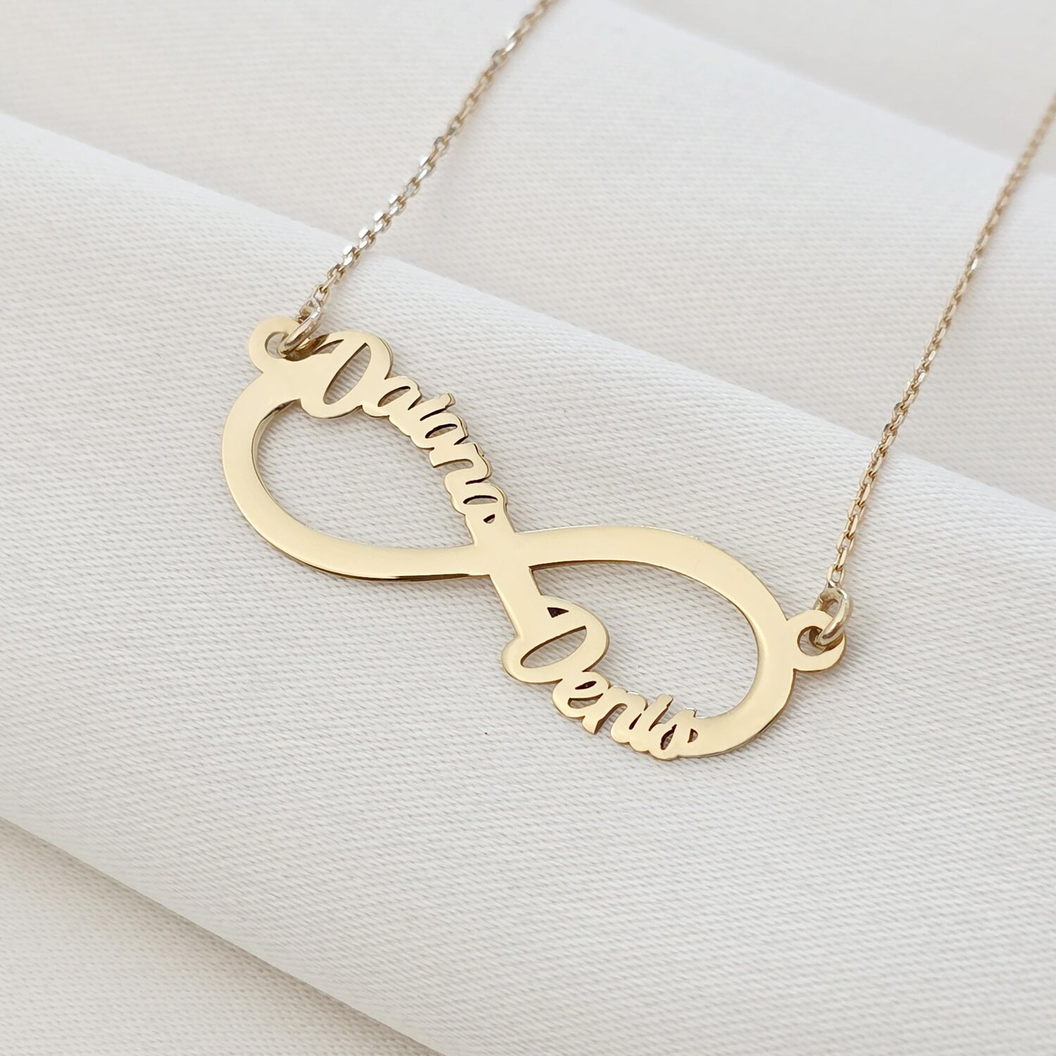 Lantisor personalizat - Pandantiv Infinit cu nume decupat - Aur Galben 14K