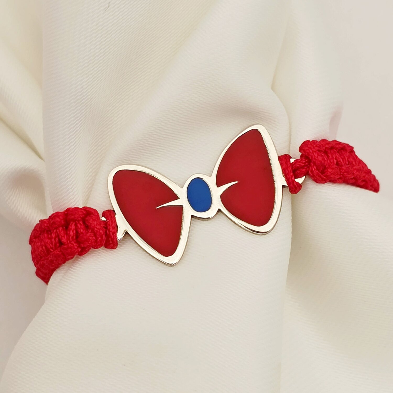 Bratara fundita decorata cu email - Argint 925 - Snur impletit reglabil