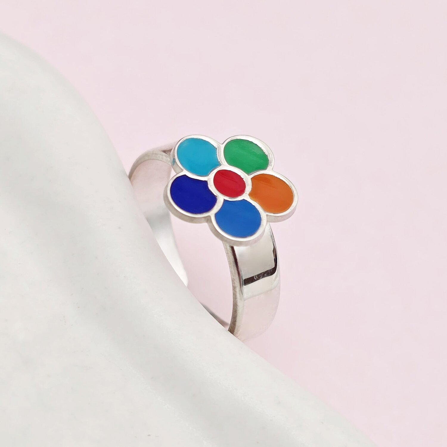 Inel Floare multicolora - Decorat cu email - Argint 925 - Model reglabil