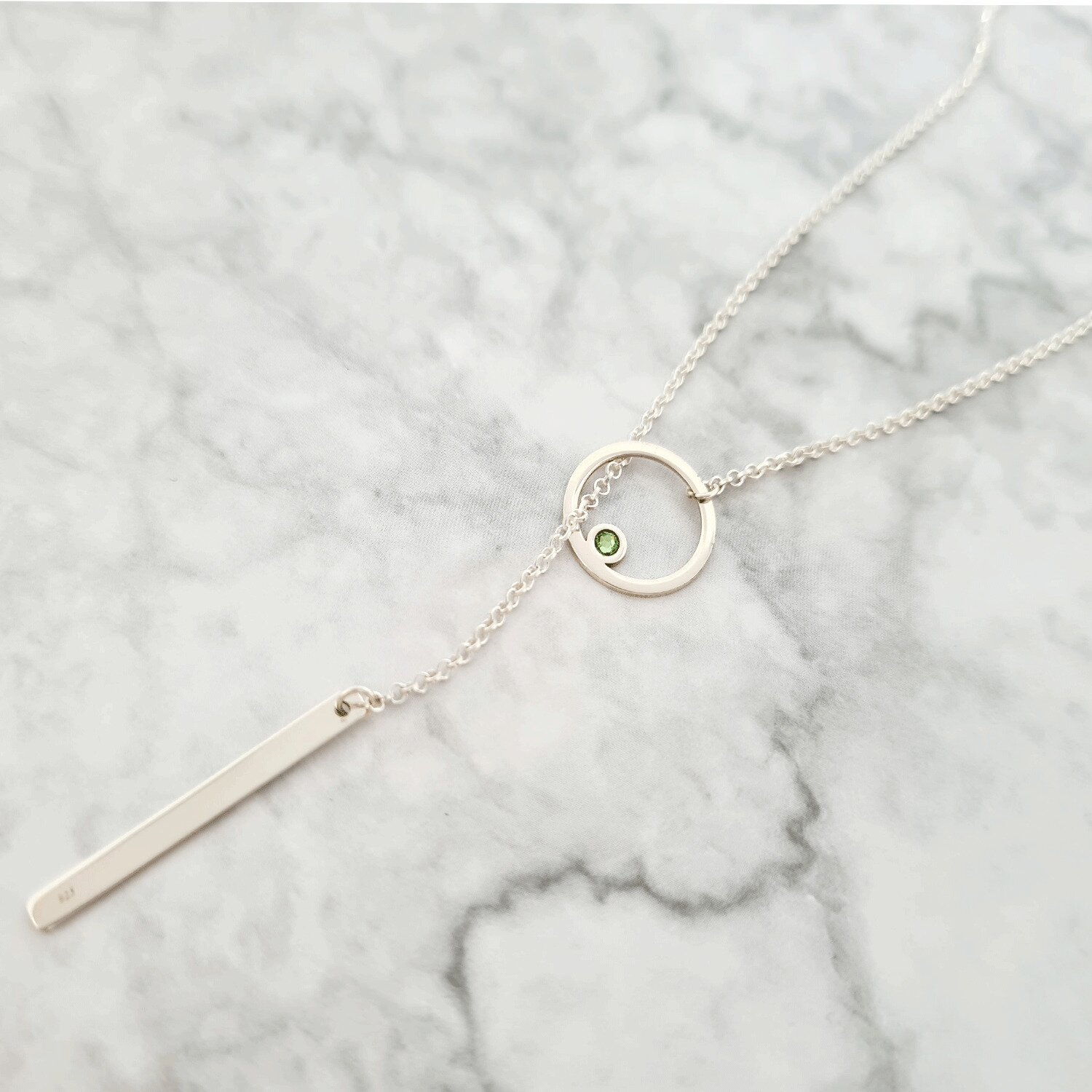 Lantisor personalizat - Cerc decupat cu cristal Swarovski si placuta - Model lariat Y - Argint 925