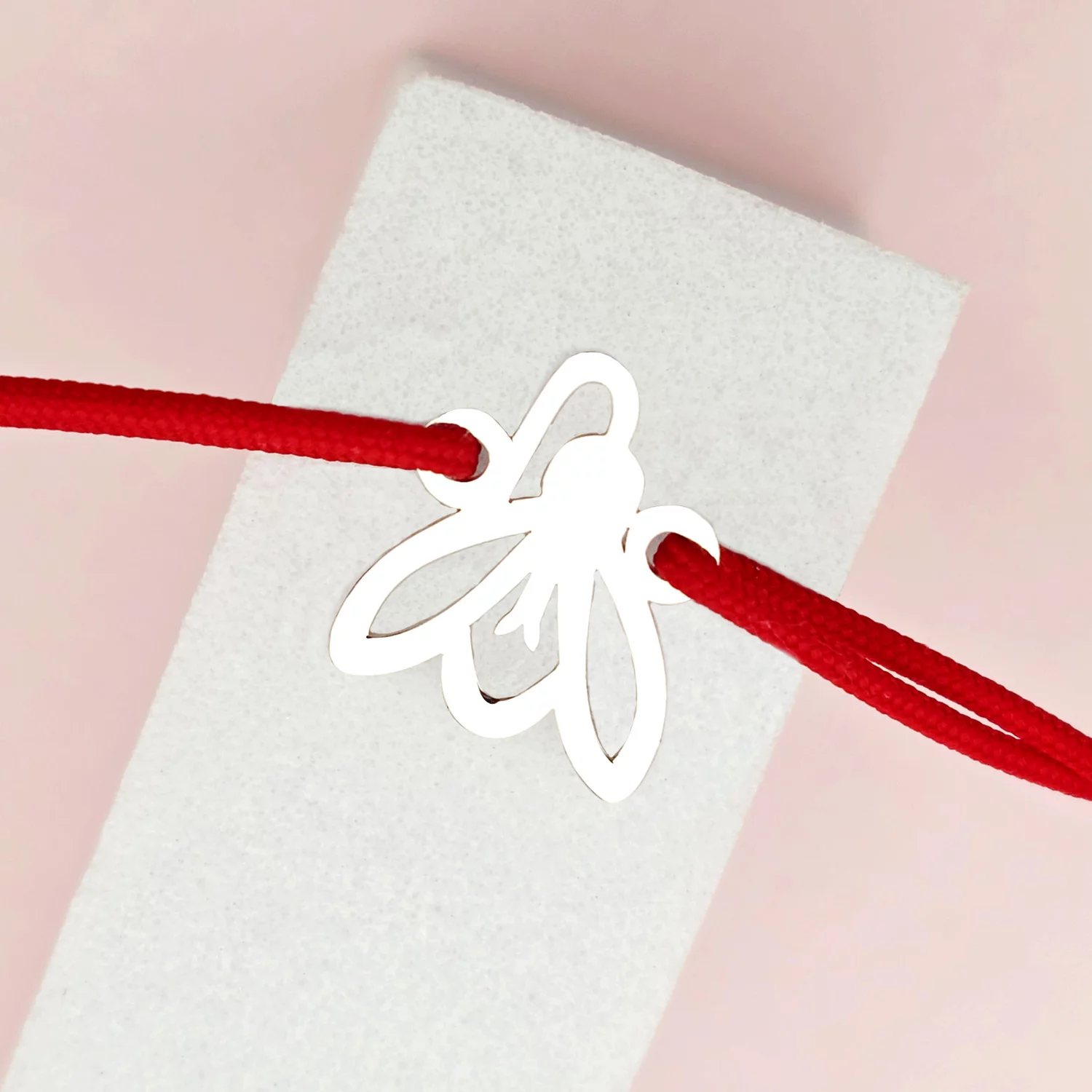 Bratara disc si nume decupat - Mama si floare cu email rosu - Argint 925 - Snur reglabil, diverse culori