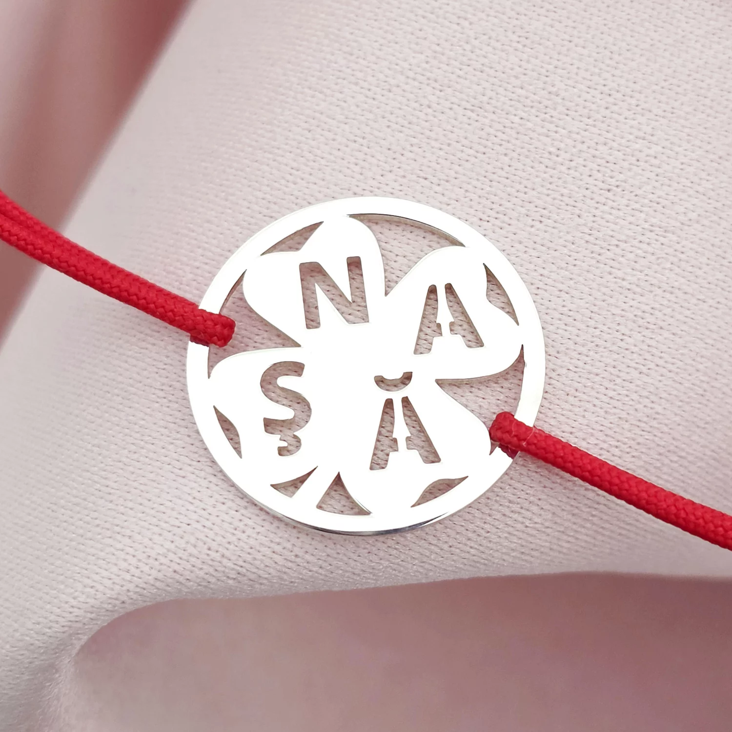 Bratara disc si trifoi cu patru foi - decupaj Nașă- Argint 925 - Snur reglabil, diverse culori