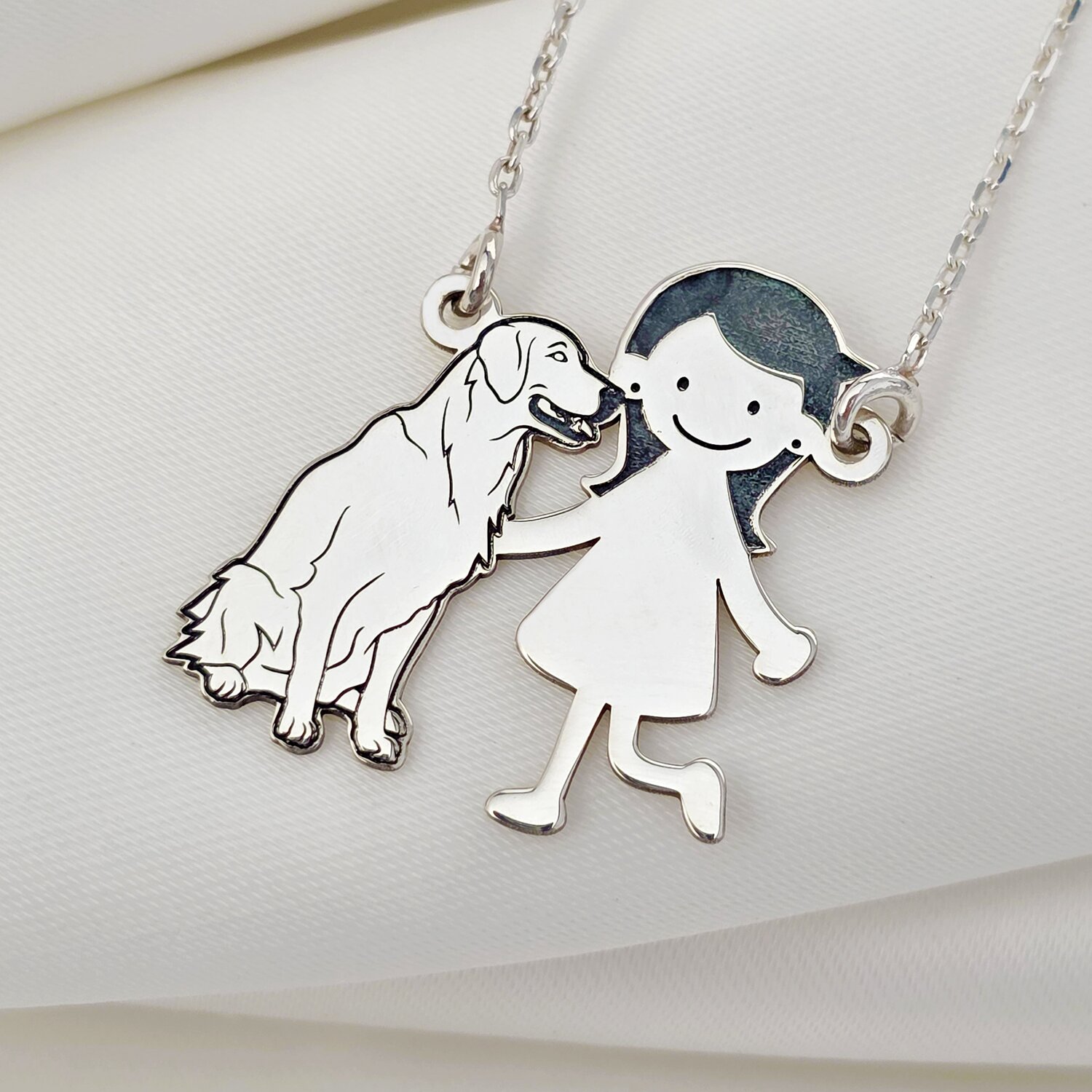 Lantisor Familie - 3 Membri - Fetita ciobanesc si labrador - Argint 925