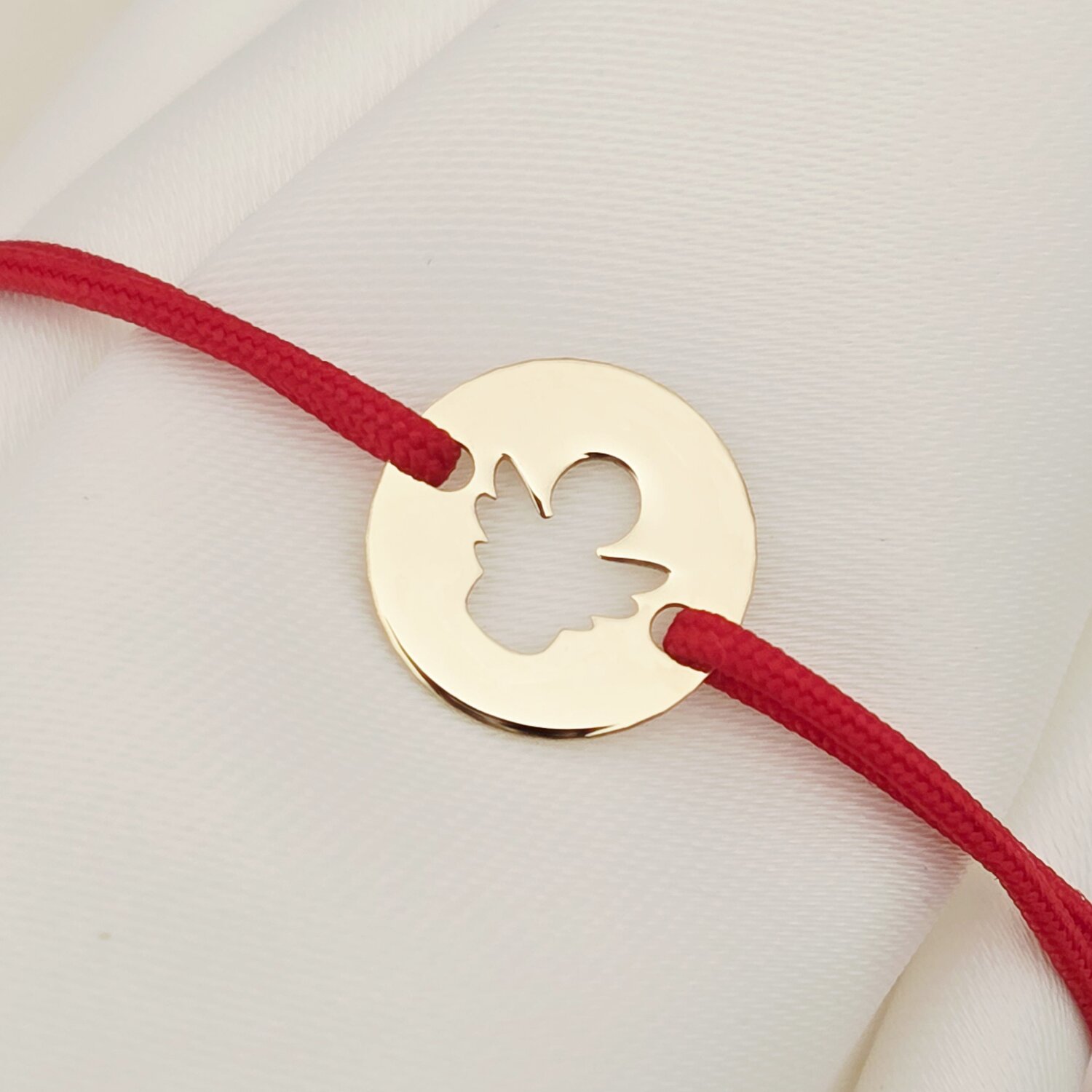 Bratara personalizata - Mama si fiica - Imbratisare - Banut de 12 mm - Aur Galben 14K - snur reglabil
