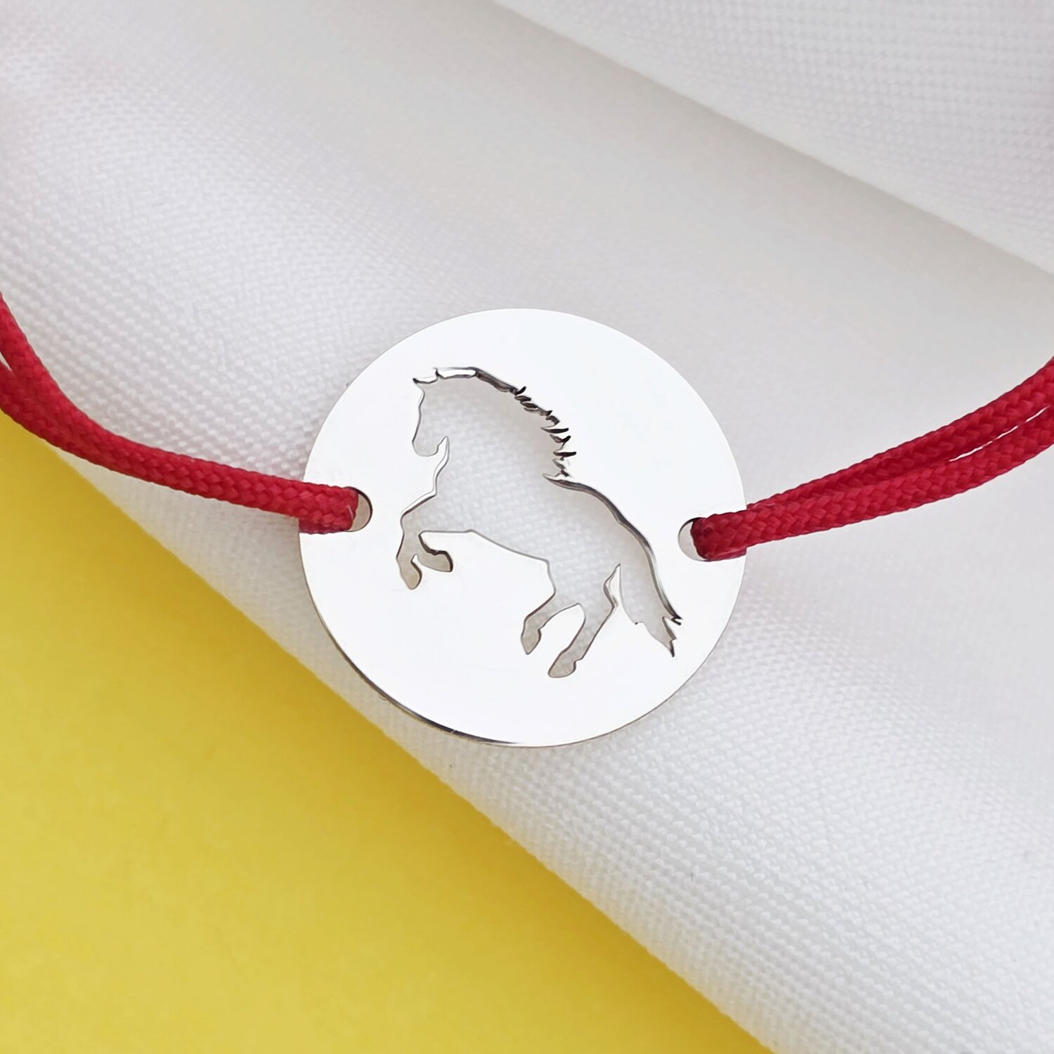 Bratara personalizata - banut de 15 mm - Cal decupat - Argint 925 - snur reglabil