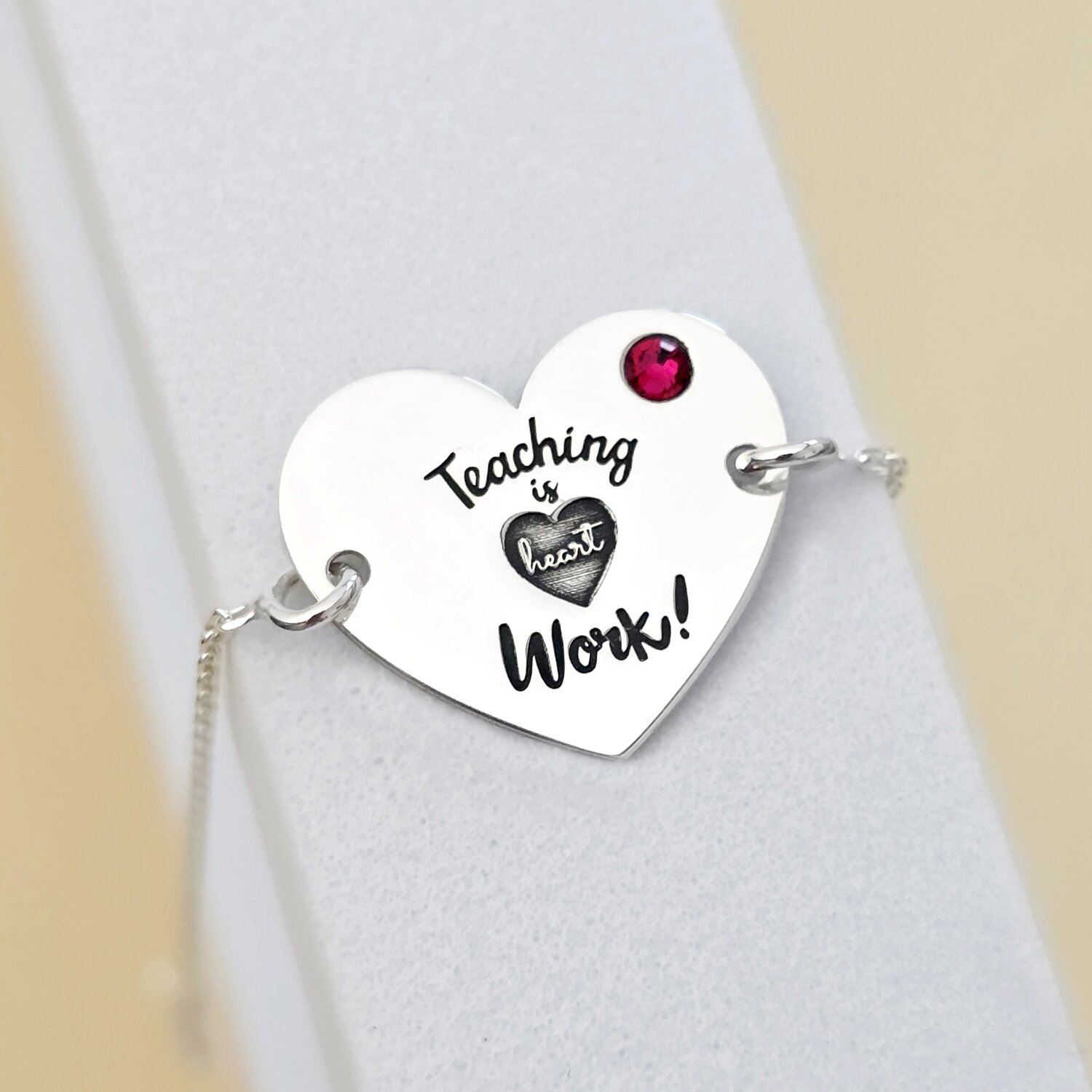 Bratara personalizata Argint 925 - cu lantisor si Cristal Swarovski - Teaching is heart work - Inimioara