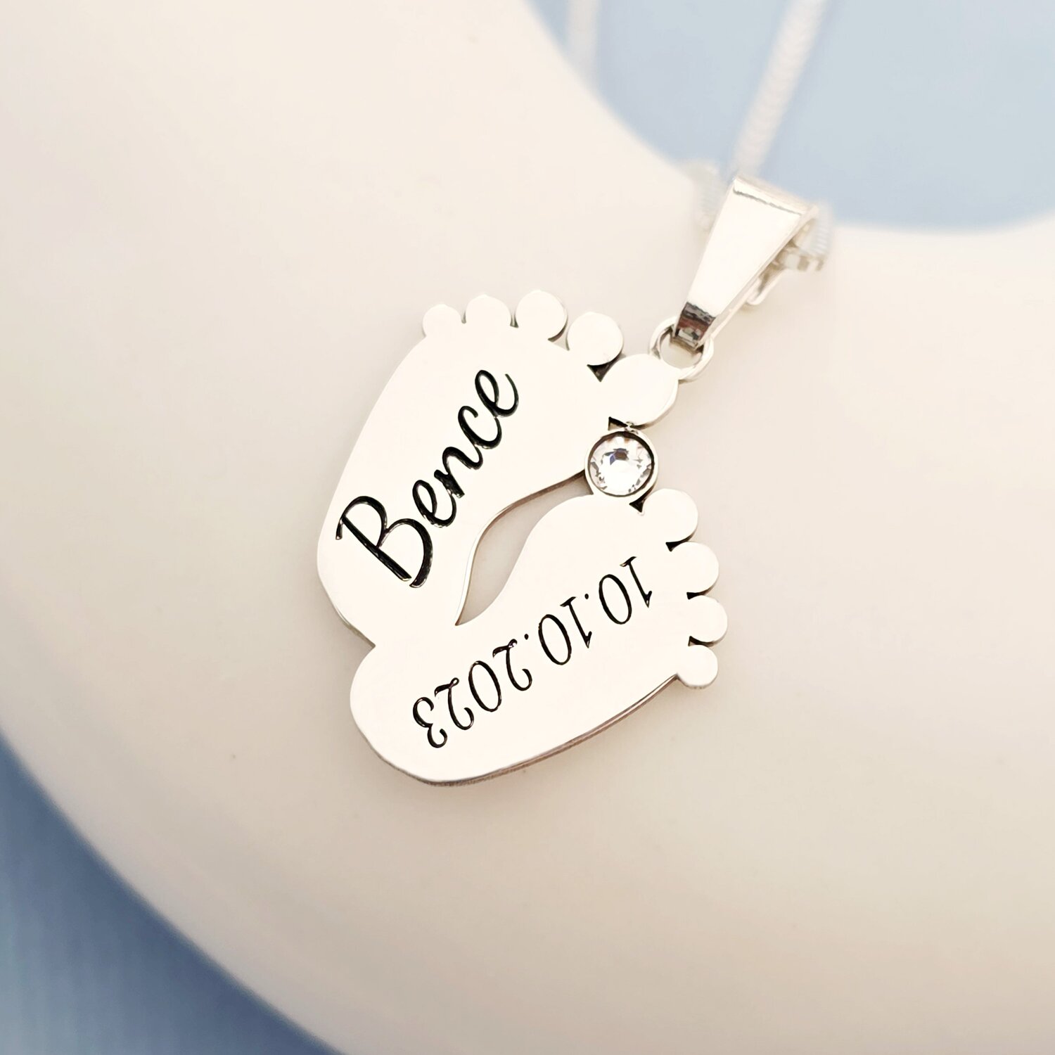 Lantisor cu pandantiv Picioruse gravate - Argint 925, Cristal Swarovski