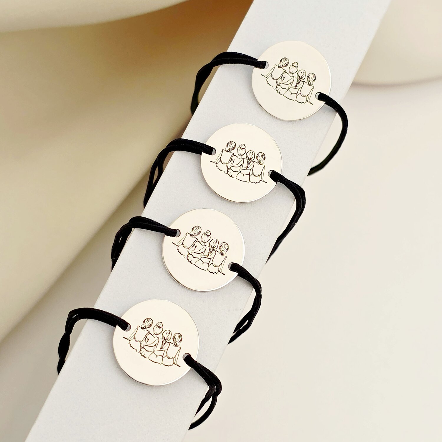 Bratara Placuta gravata cu Membri Familiei si text - 4 membri - Argint 925, piele