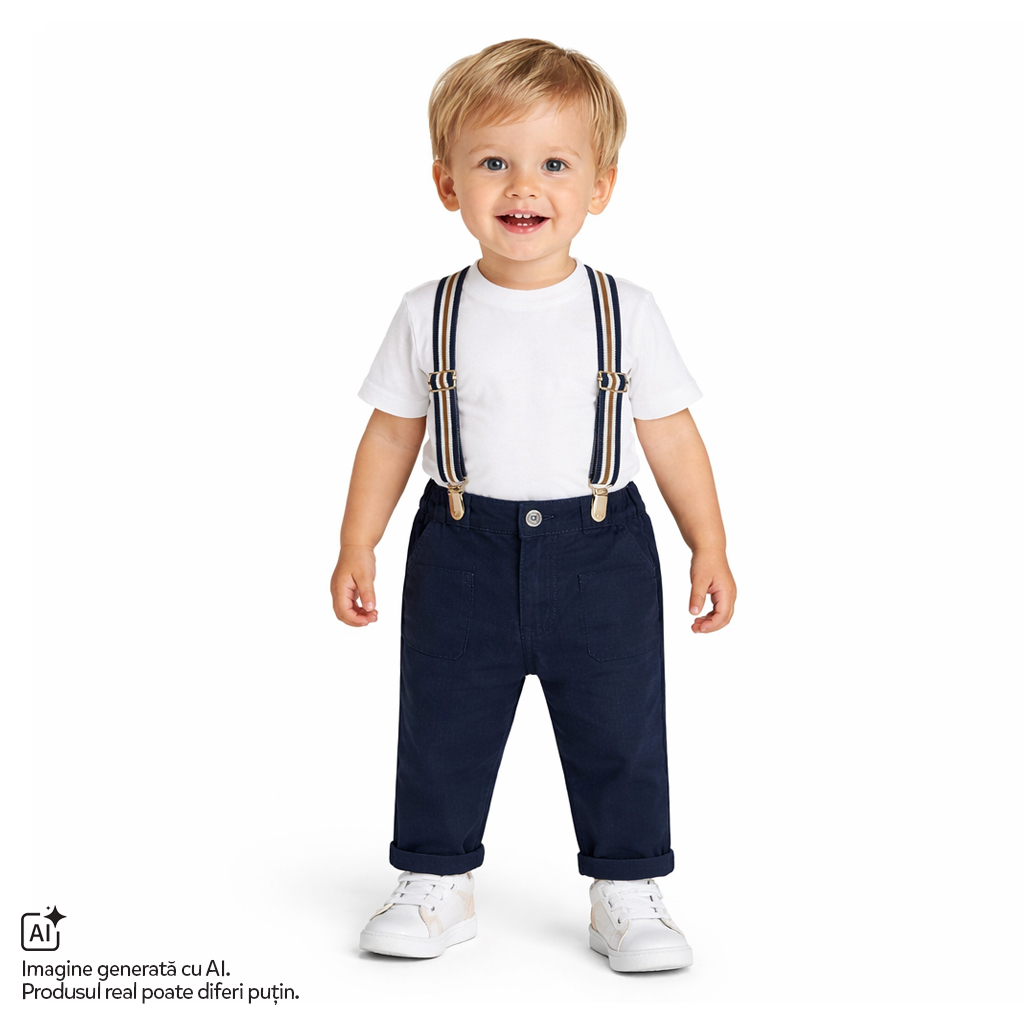 Pantaloni lungi pentru copii Chicco cu bretele, Albastru, 01707-70MFCO
