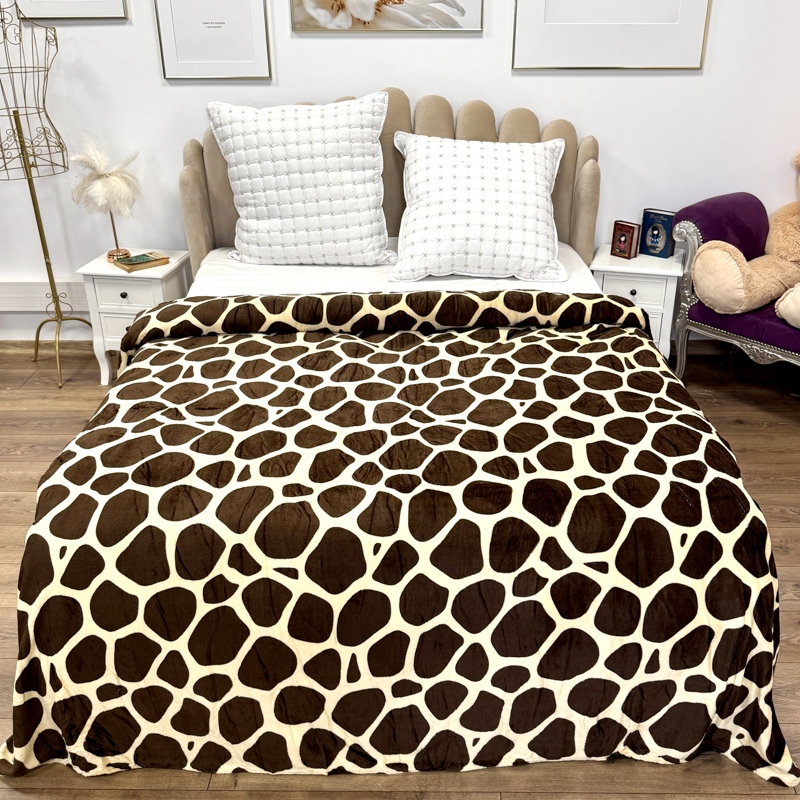 Patura Cocolino Groasa, cu Fermoar, cu Blanita Sherpa Gri, 200x230 cm, Leopard, Cappuccino